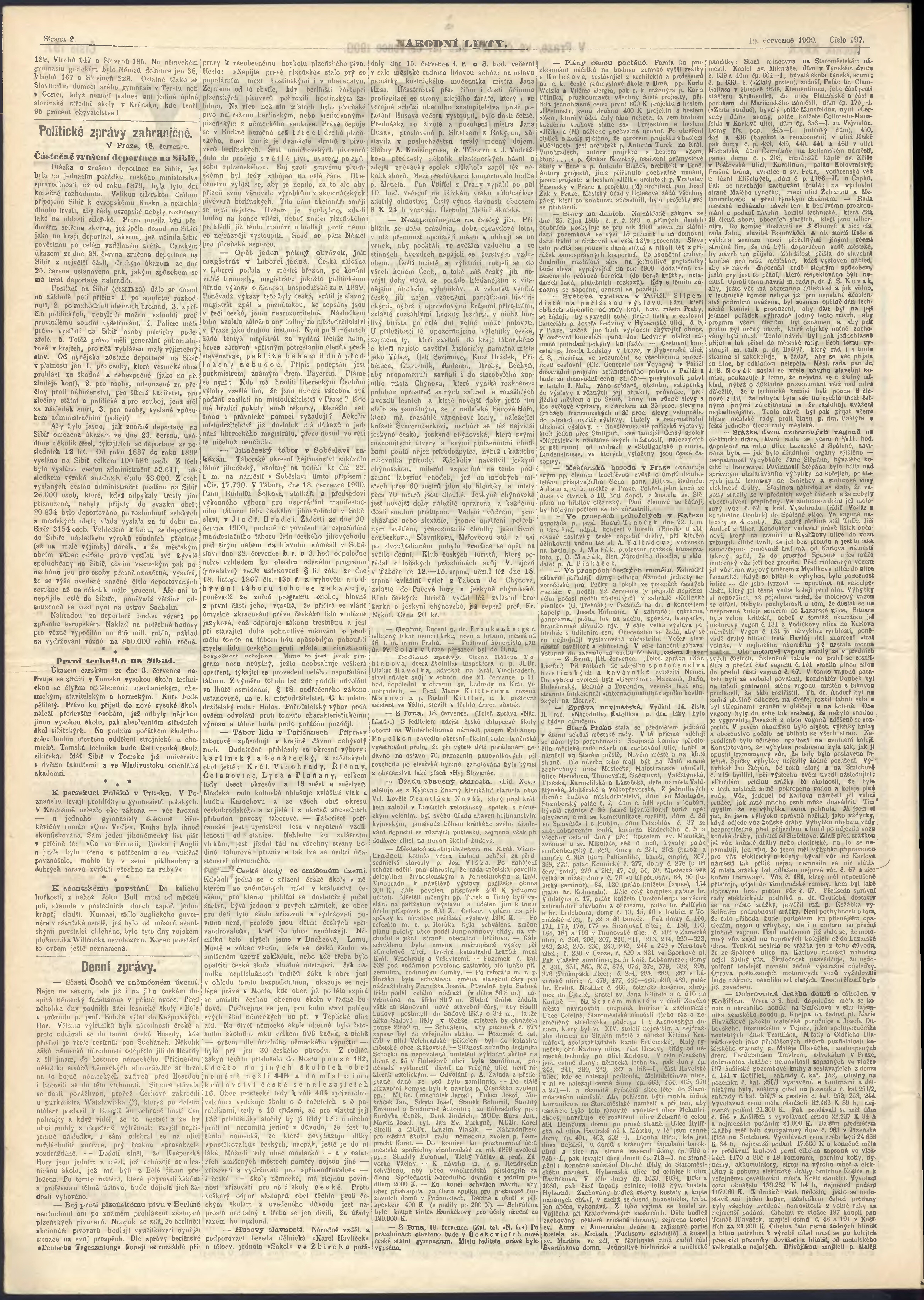 * Datum vydání výtisku: 19.7.1900 Číslo výtisku: 197 Poznámky k výtisku: ranní vydání;