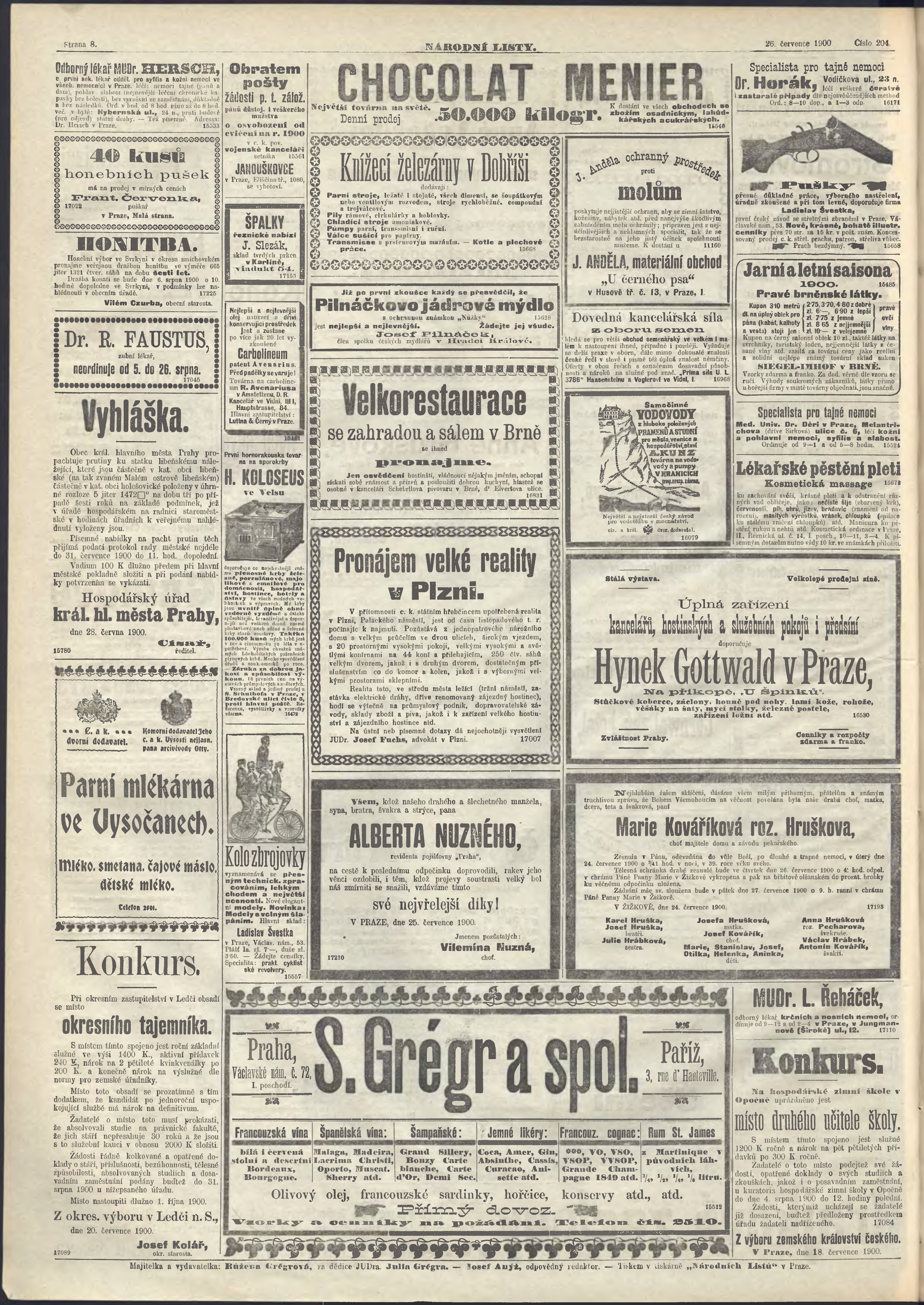 * Datum vydání výtisku: 26.7.1900 Číslo výtisku: 204 Poznámky k výtisku: ranní vydání;