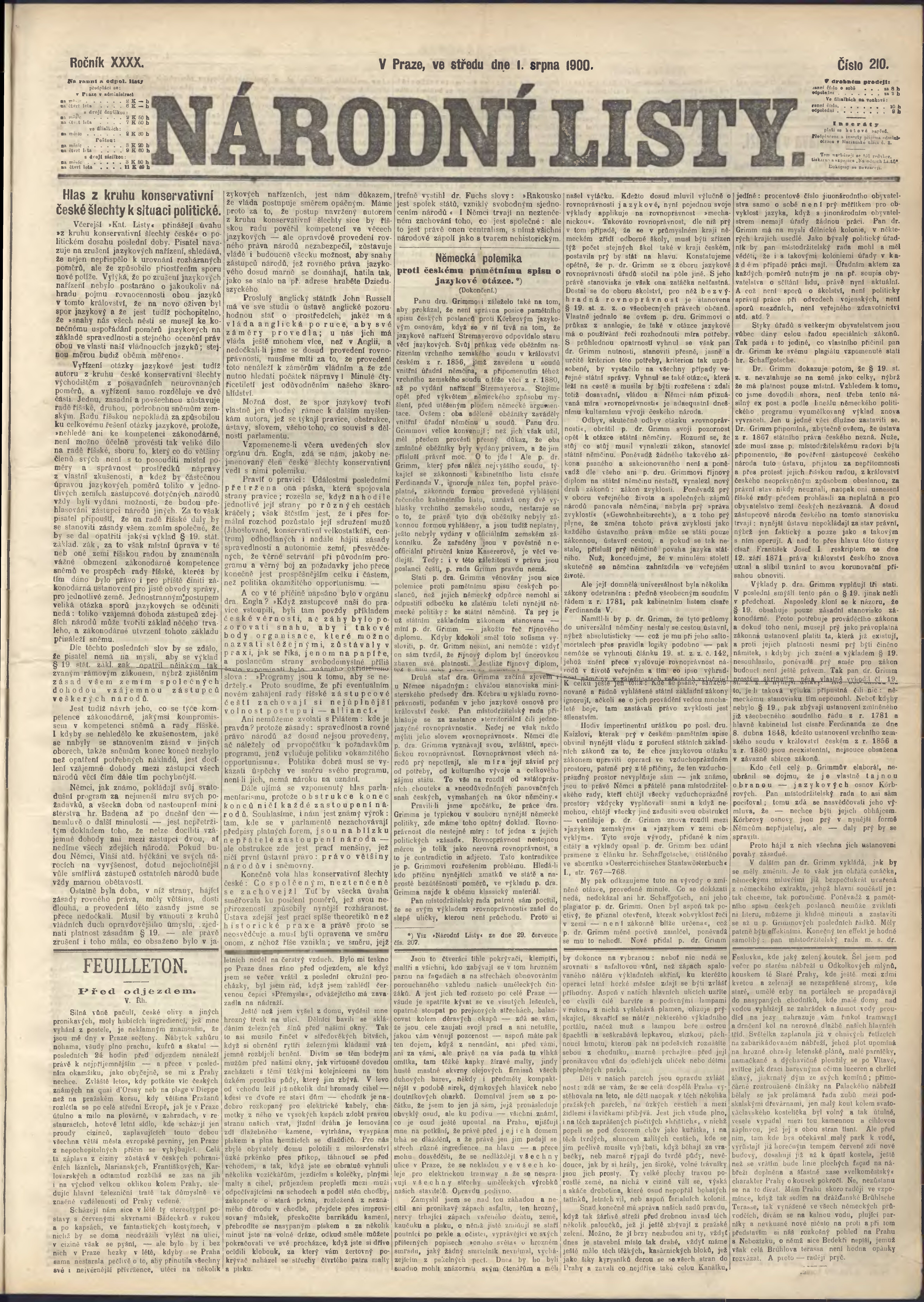 * Datum vydání výtisku: 1.8.1900 Číslo výtisku: 210 Poznámky k výtisku: ranní vydání;