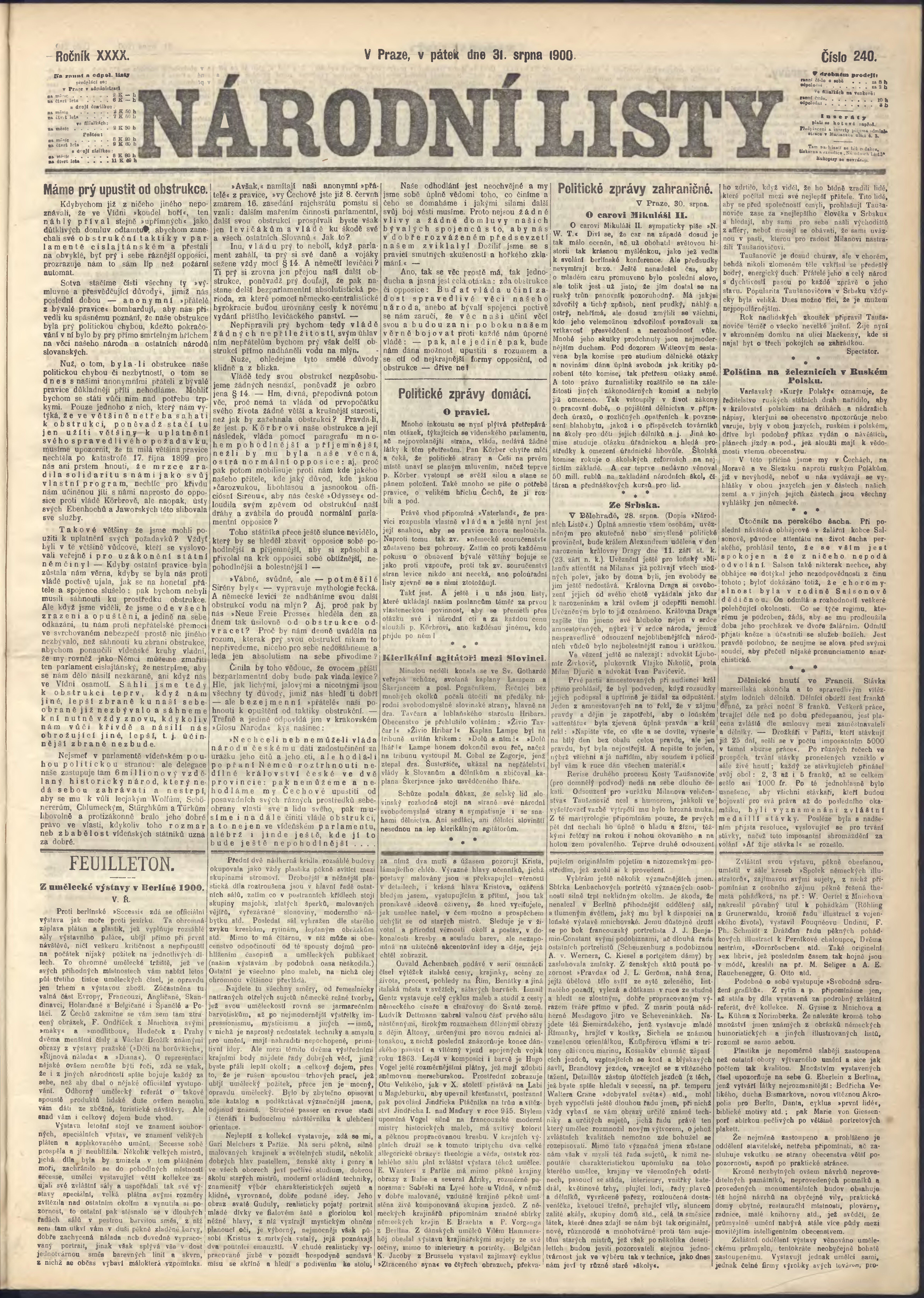 * Datum vydání výtisku: 31.8.1900 Číslo výtisku: 240 Poznámky k výtisku: ranní vydání;