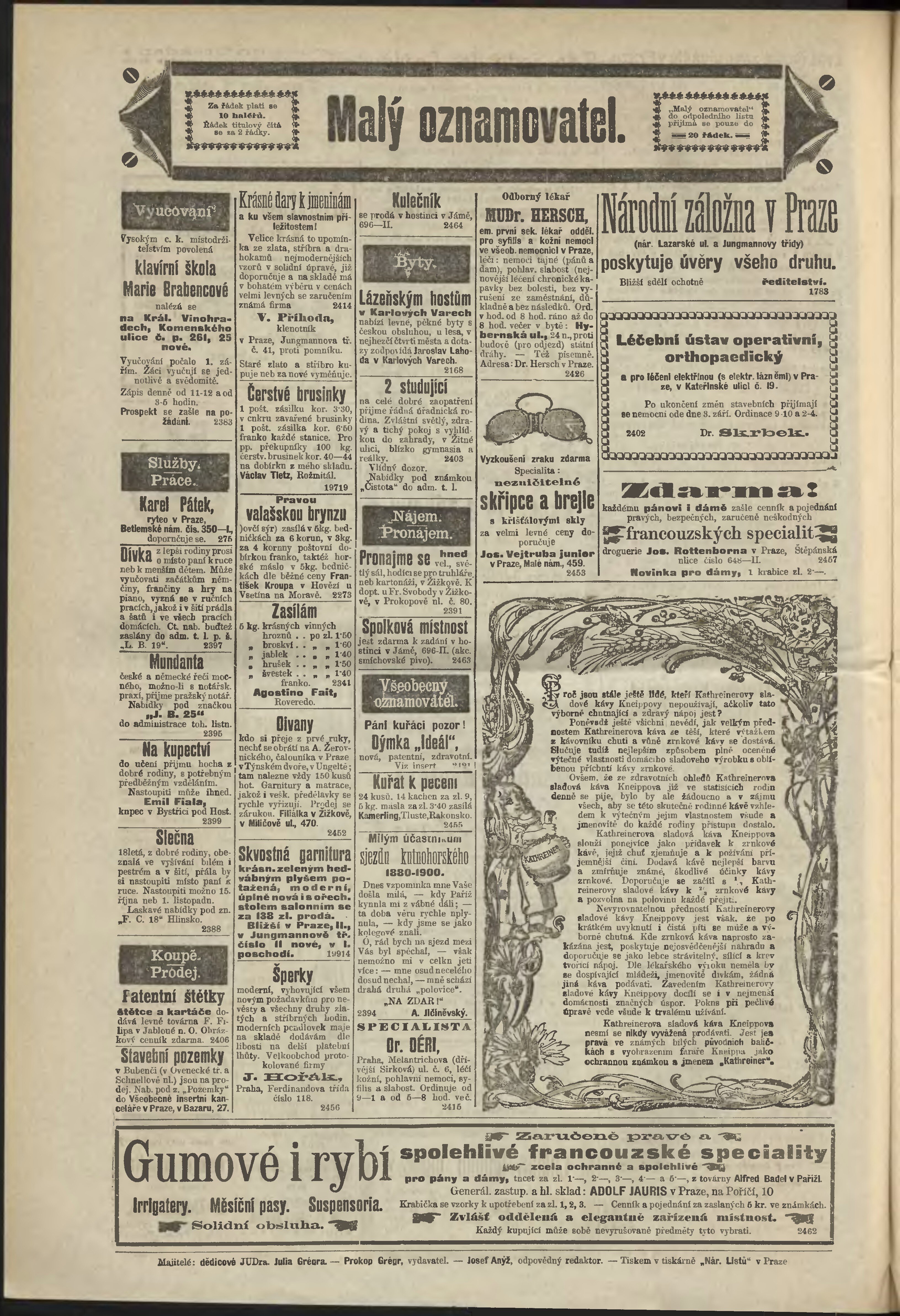* Datum vydání výtisku: 1.9.1900 Číslo výtisku: 241 Poznámky k výtisku: odpolední vydání;