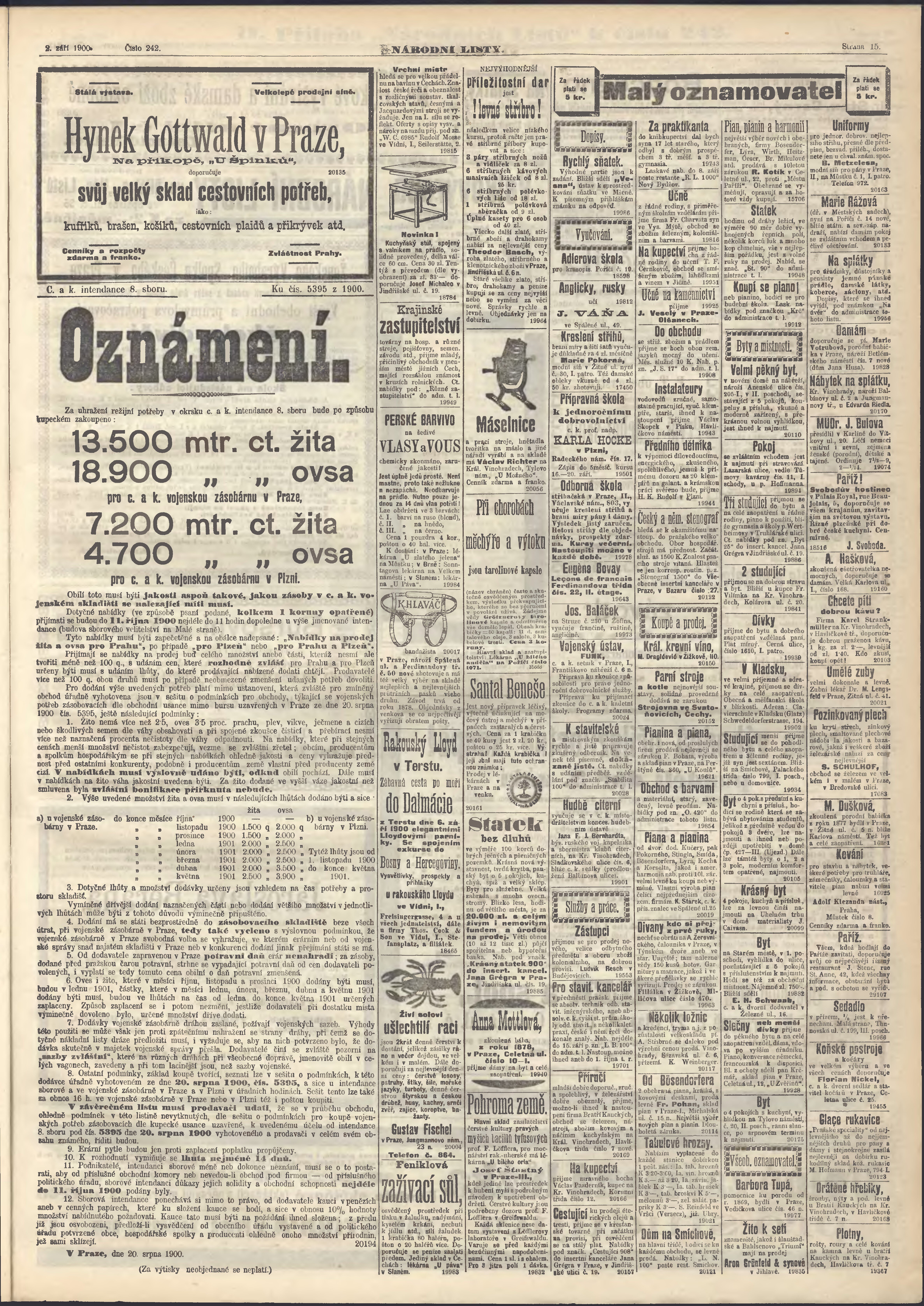 * Datum vydání výtisku: 2.9.1900 Číslo výtisku: 242 Poznámky k výtisku: ranní vydání;