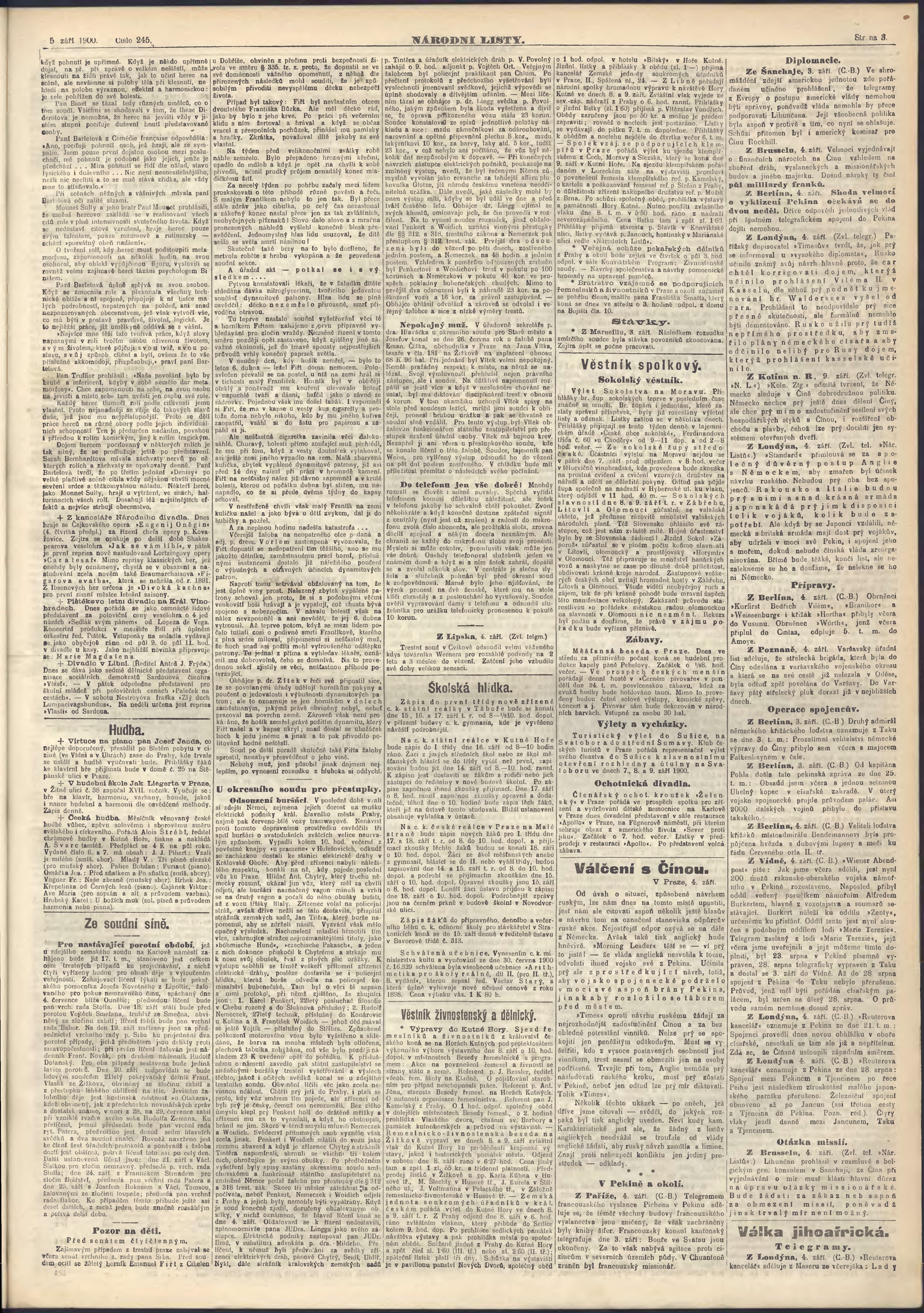 * Datum vydání výtisku: 5.9.1900 Číslo výtisku: 245 Poznámky k výtisku: ranní vydání;