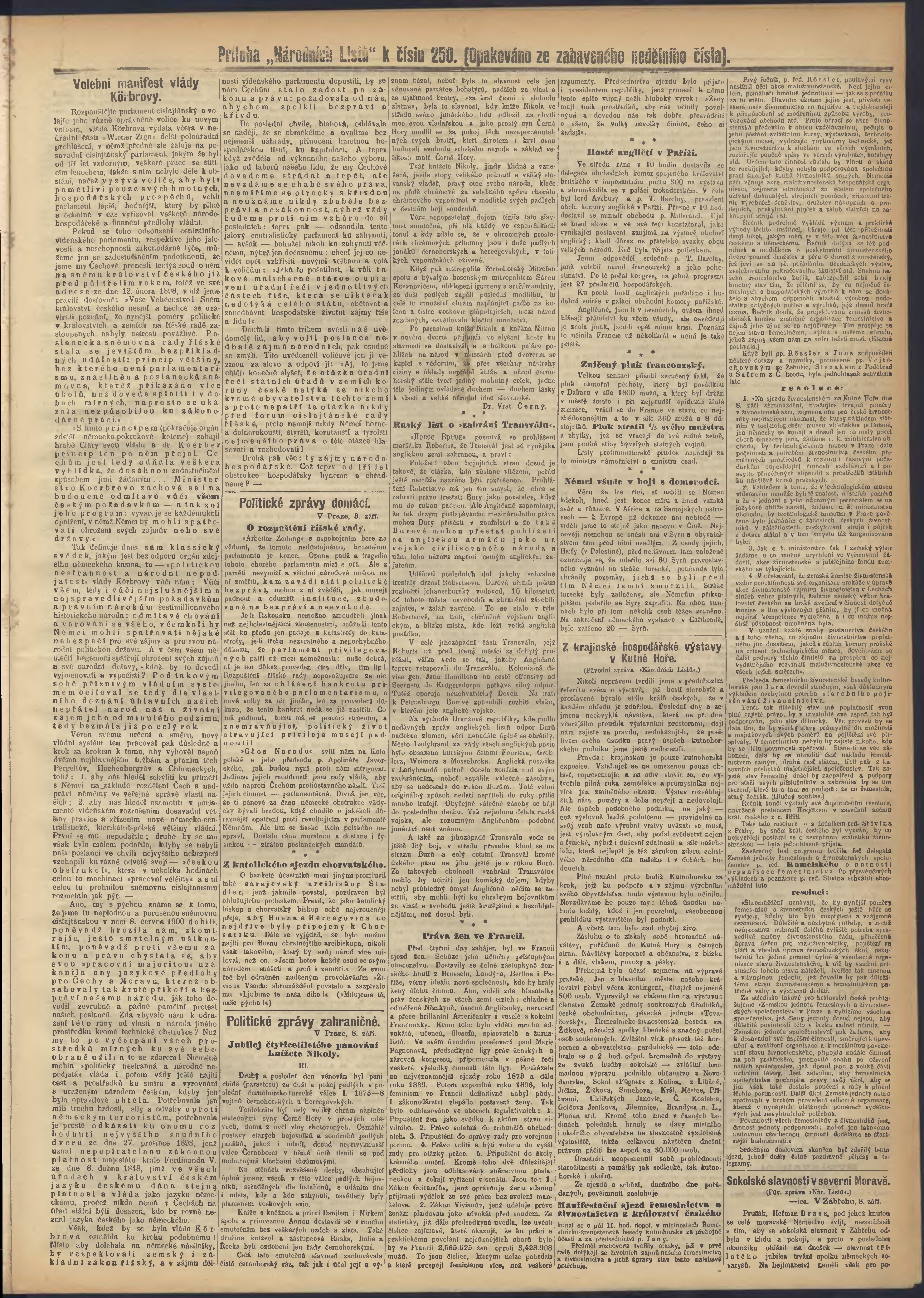* Datum vydání výtisku: 10.9.1900 Číslo výtisku: 250 Poznámky k výtisku: ranní vydání;