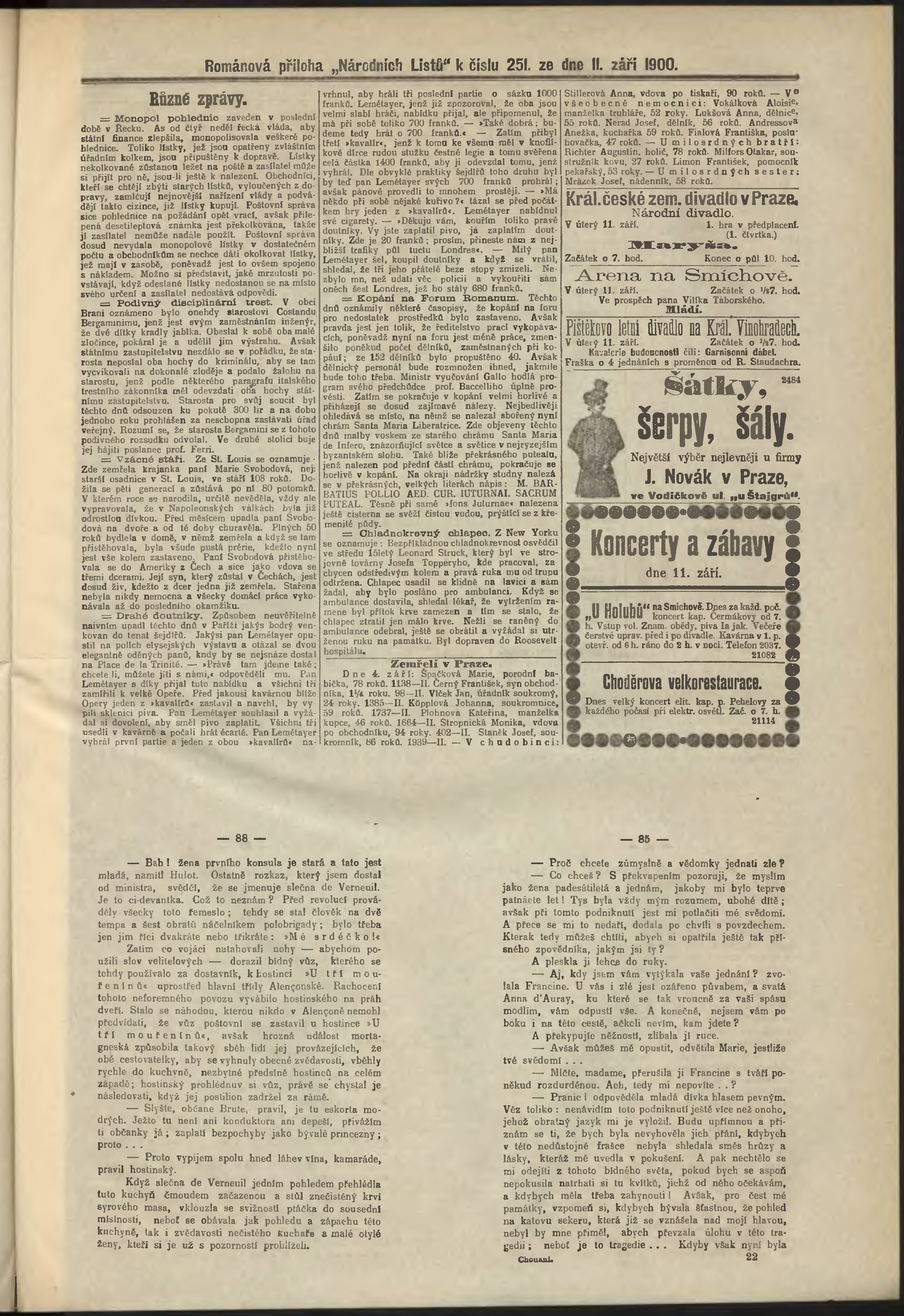 * Datum vydání výtisku: 11.9.1900 Číslo výtisku: 251 Poznámky k výtisku: odpolední vydání;