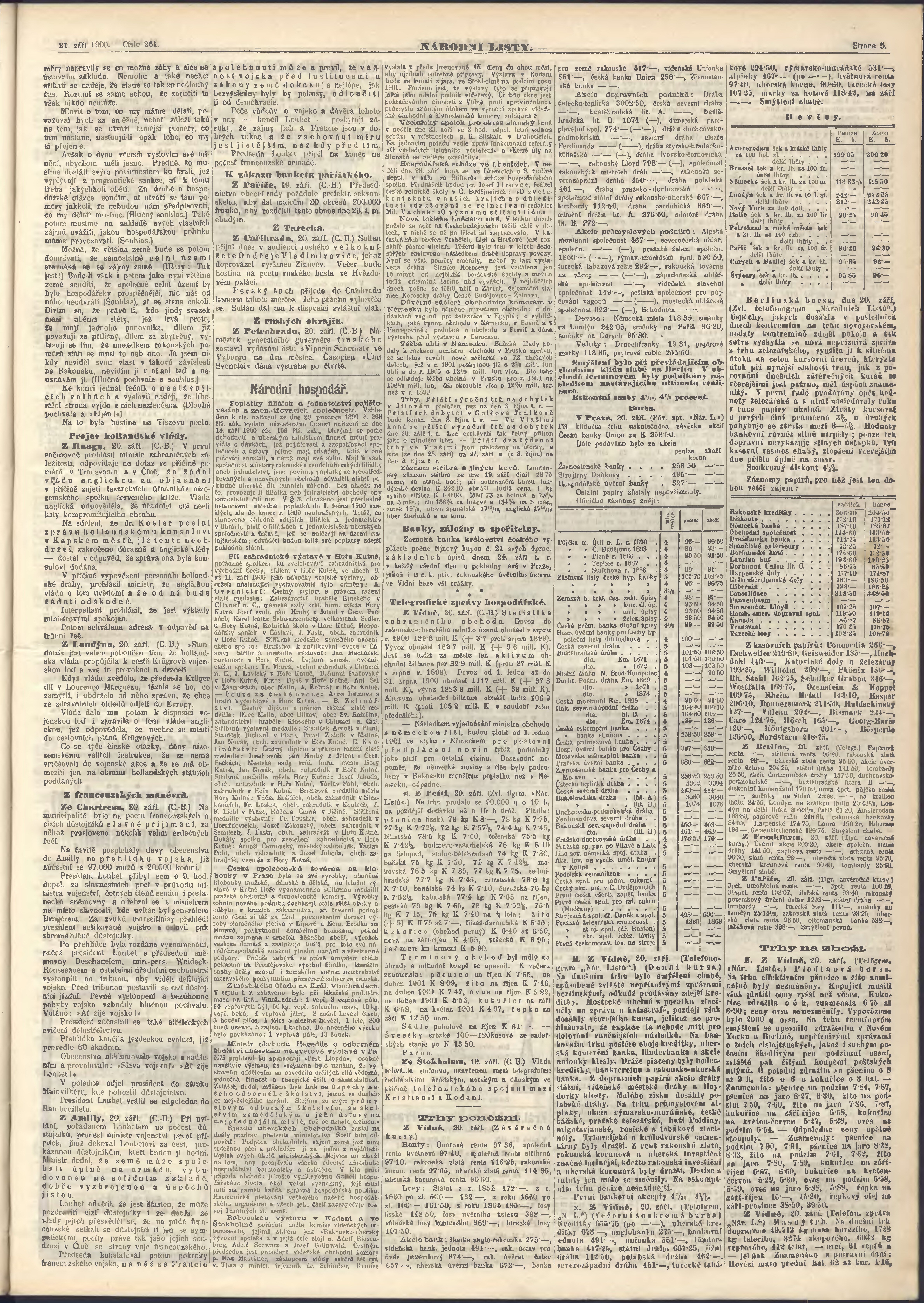 * Datum vydání výtisku: 21.9.1900 Číslo výtisku: 261 Poznámky k výtisku: ranní vydání;