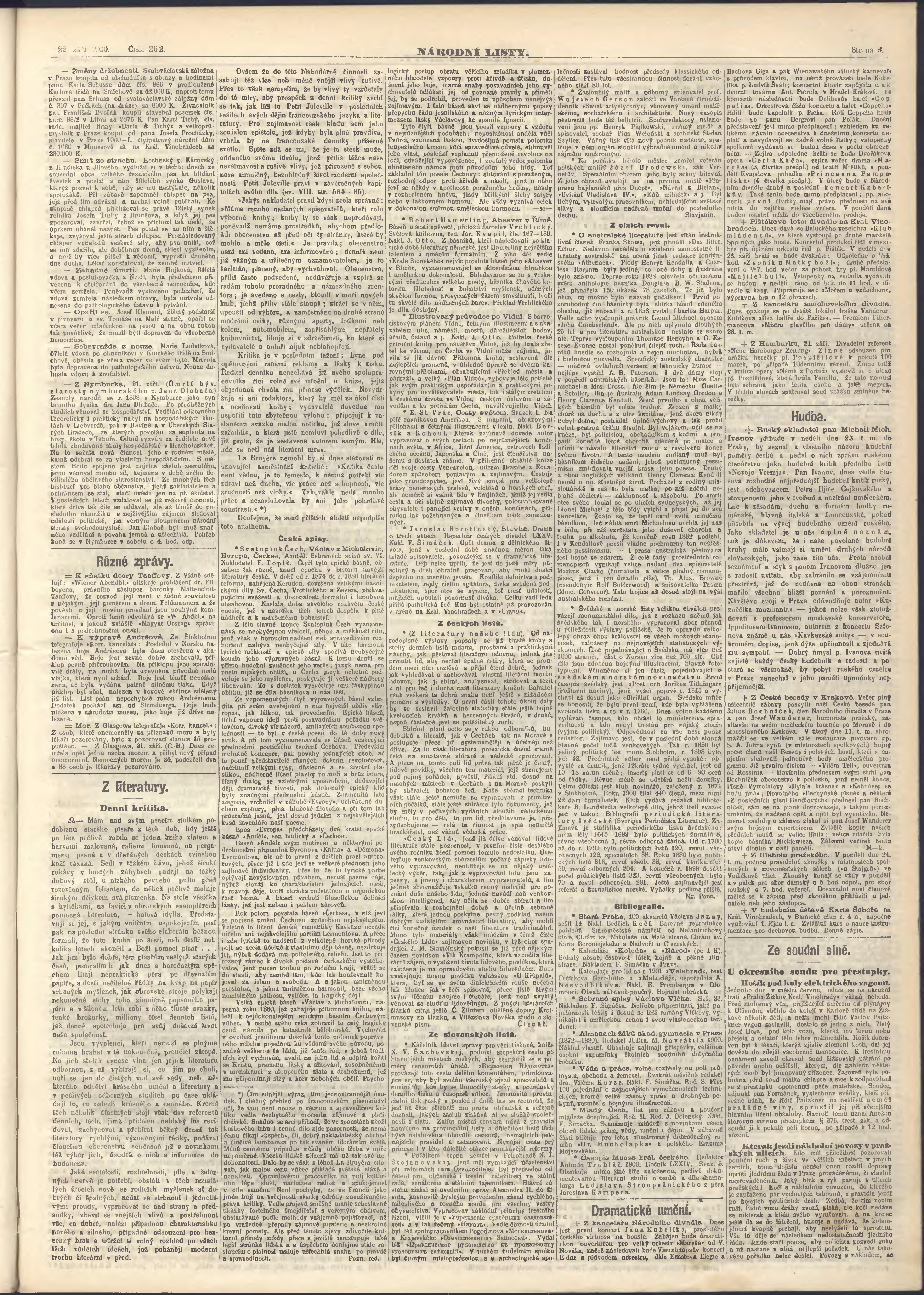 * Datum vydání výtisku: 22.9.1900 Číslo výtisku: 262 Poznámky k výtisku: ranní vydání;