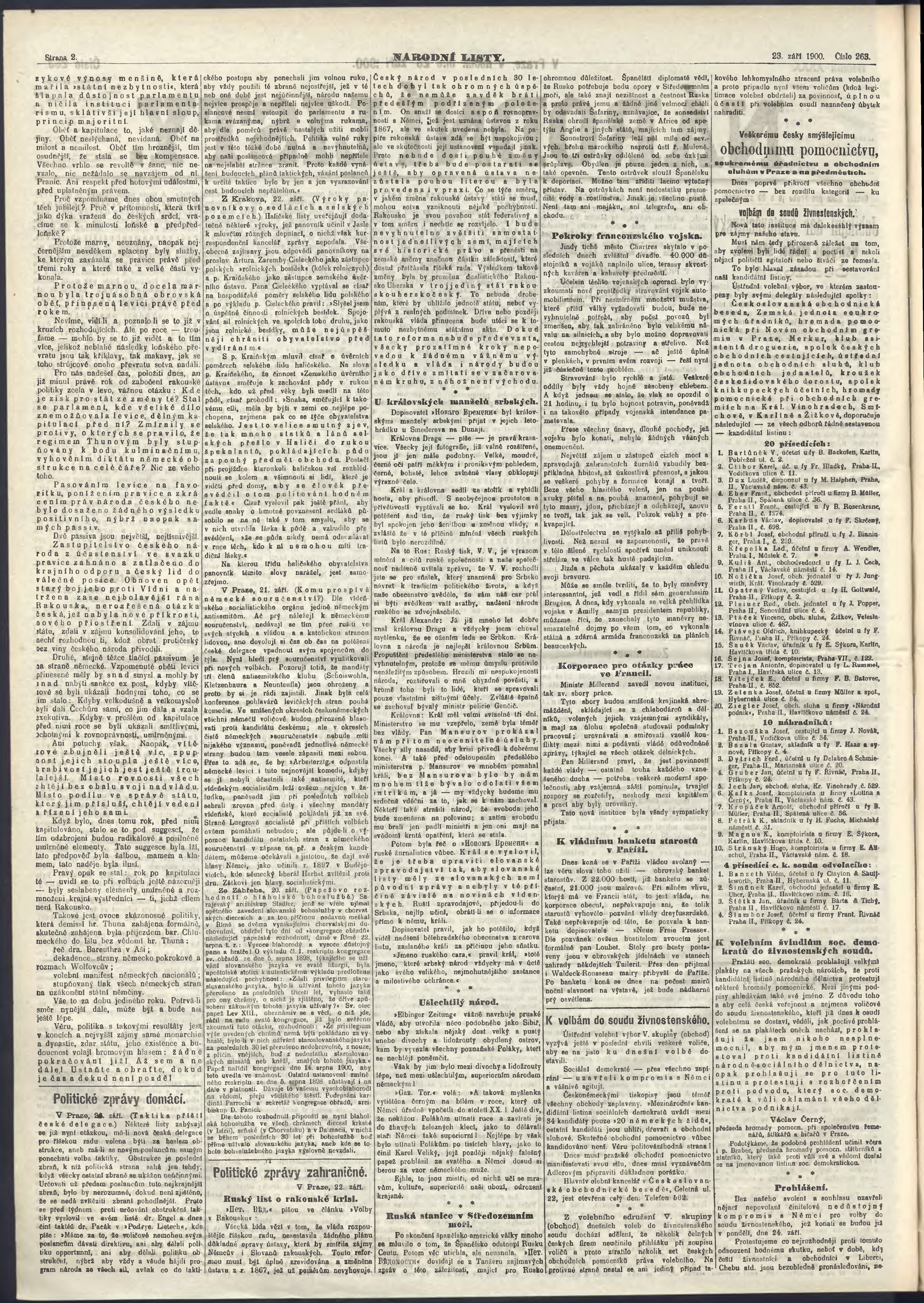 * Datum vydání výtisku: 23.9.1900 Číslo výtisku: 263 Poznámky k výtisku: ranní vydání;