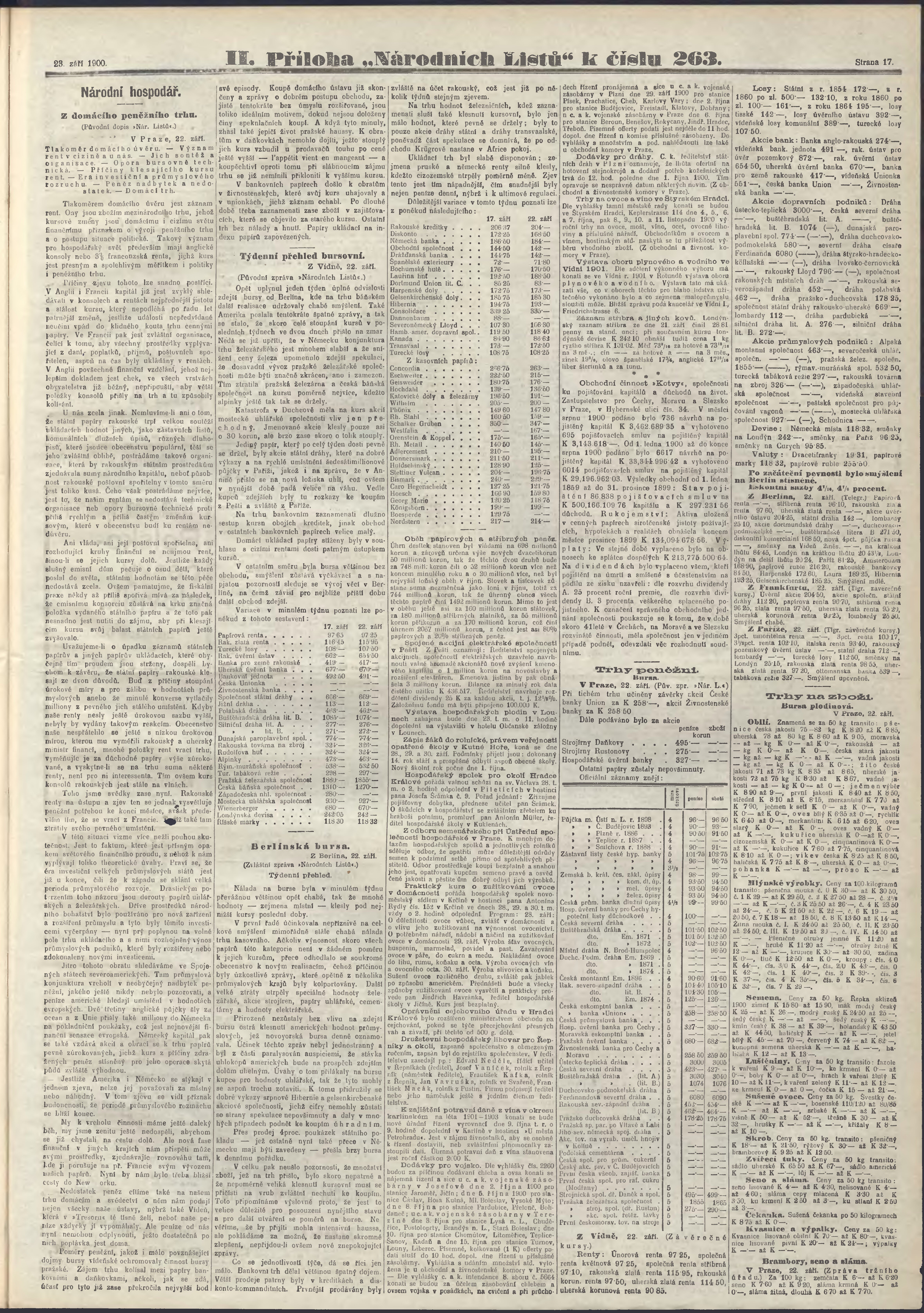 * Datum vydání výtisku: 23.9.1900 Číslo výtisku: 263 Poznámky k výtisku: ranní vydání;