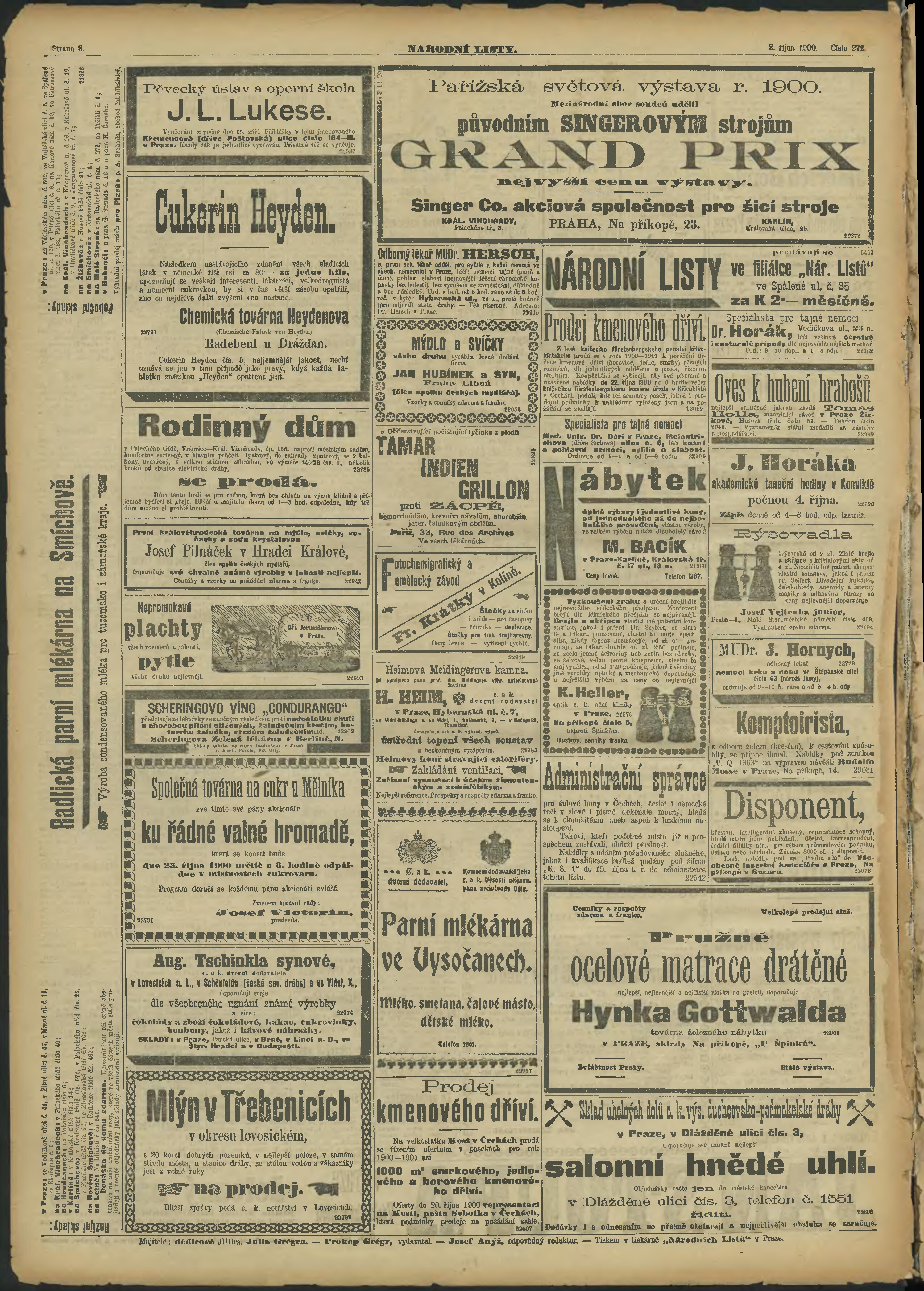 * Datum vydání výtisku: 2.10.1900 Číslo výtisku: 272 Poznámky k výtisku: ranní vydání;