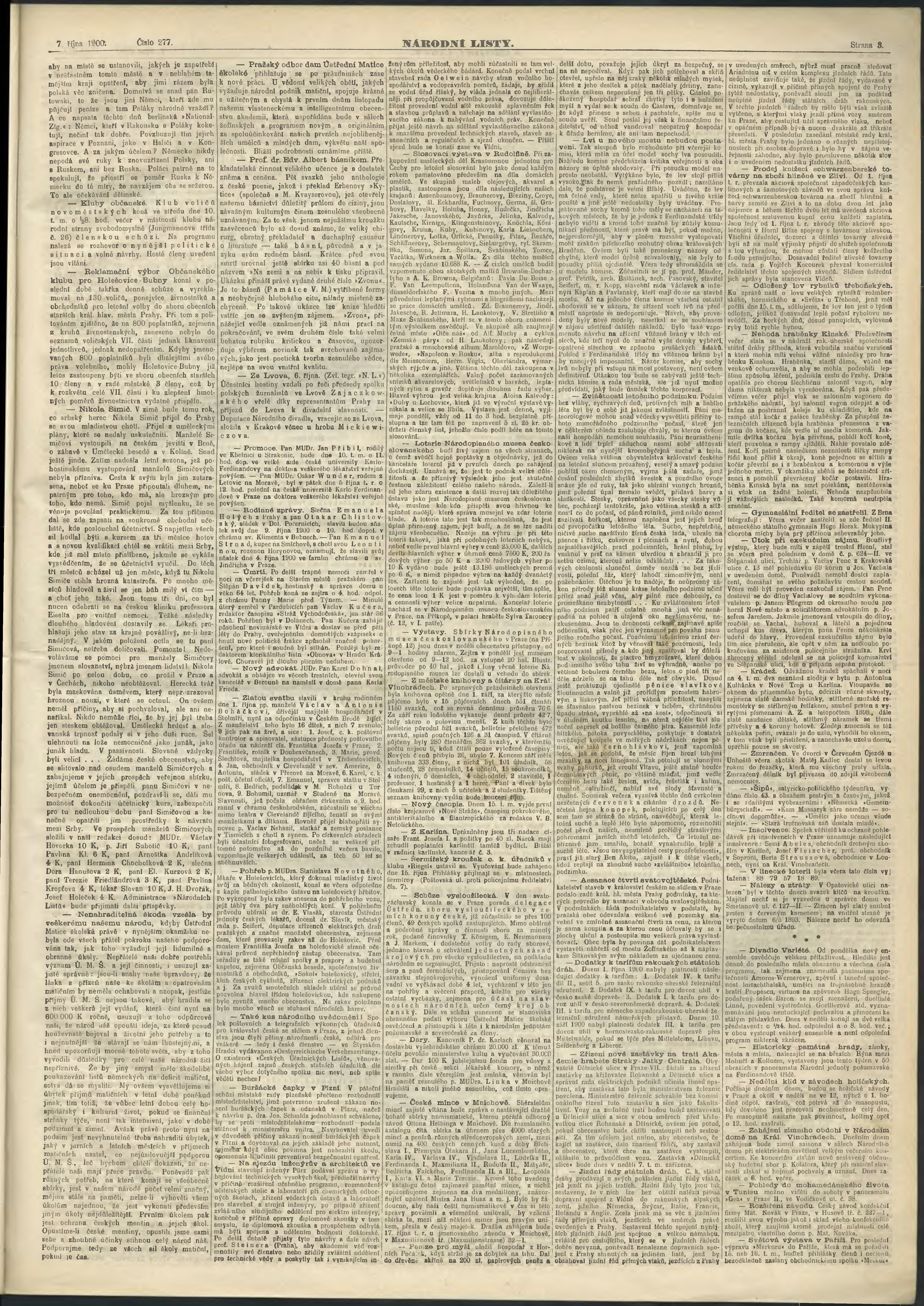 * Datum vydání výtisku: 7.10.1900 Číslo výtisku: 277 Poznámky k výtisku: ranní vydání;
