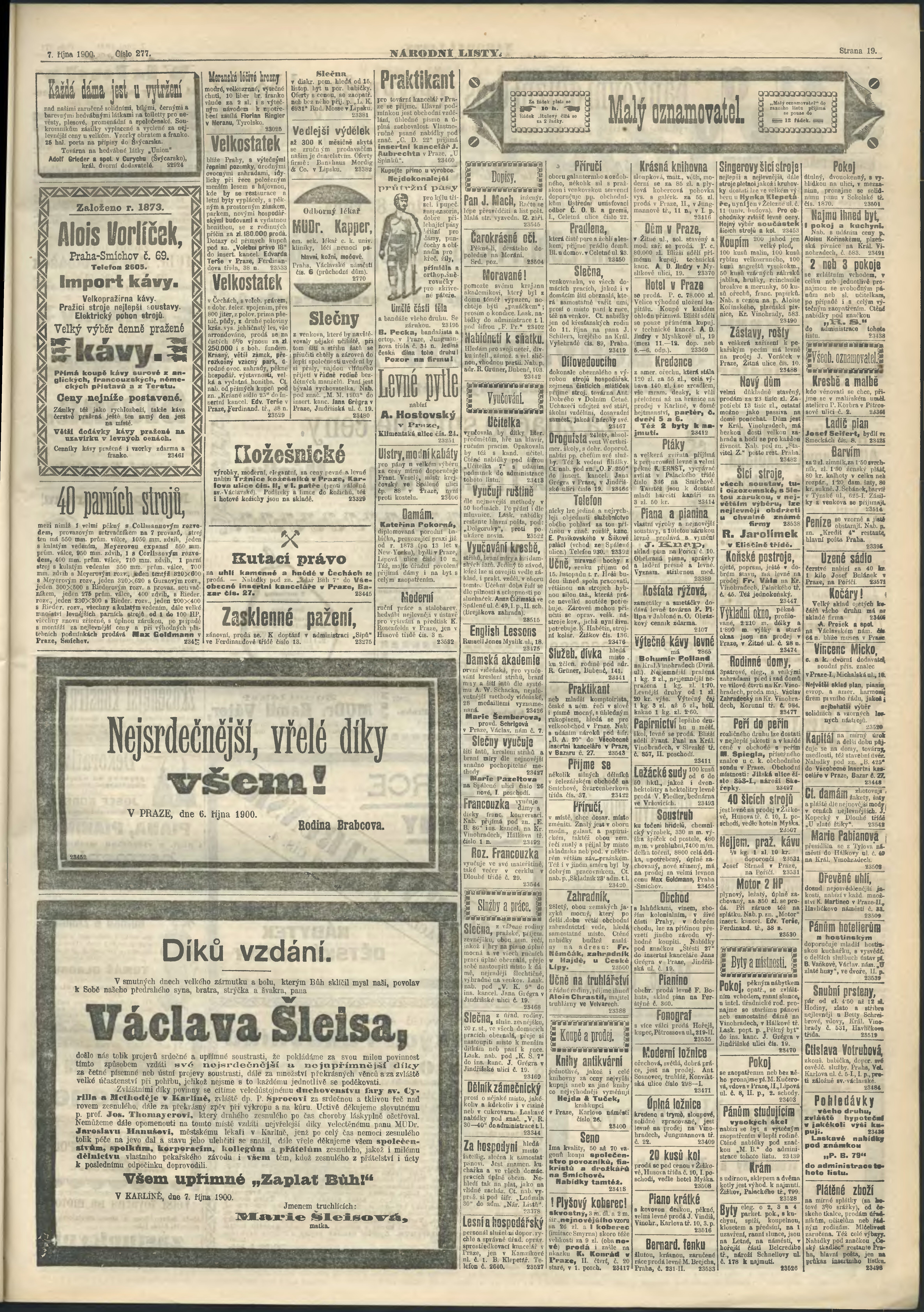 * Datum vydání výtisku: 7.10.1900 Číslo výtisku: 277 Poznámky k výtisku: ranní vydání;