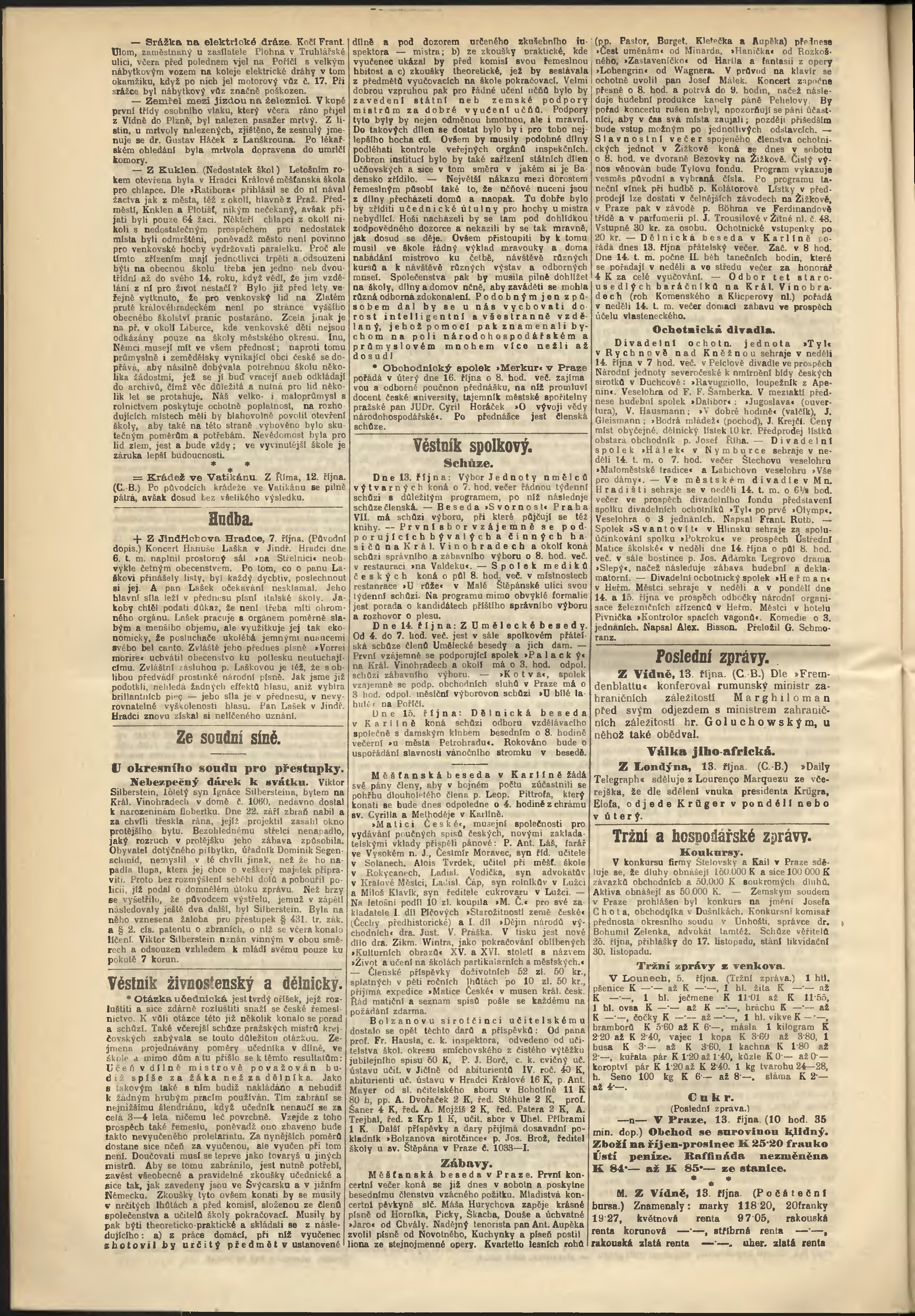 * Datum vydání výtisku: 13.10.1900 Číslo výtisku: 283 Poznámky k výtisku: odpolední vydání;