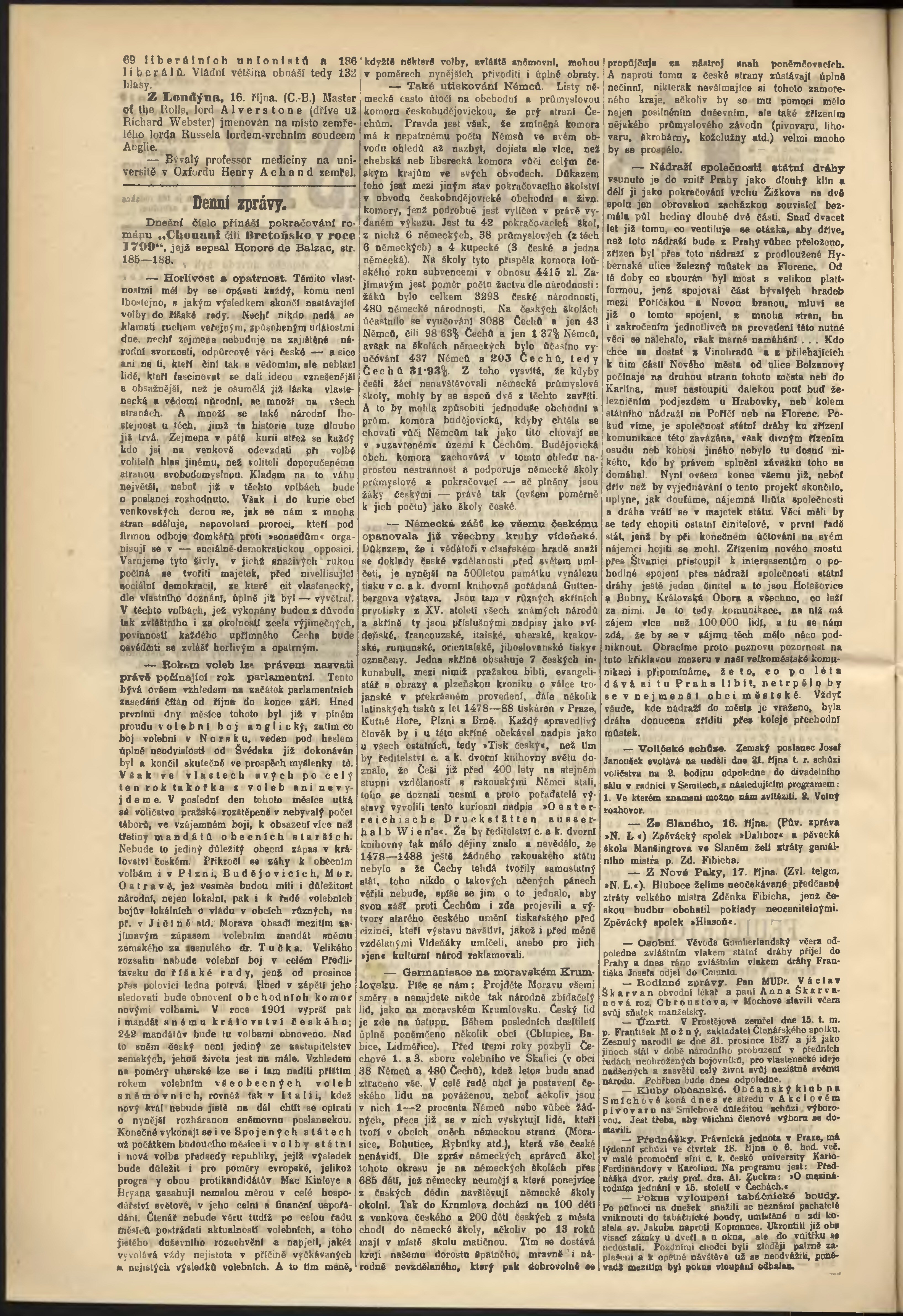 * Datum vydání výtisku: 17.10.1900 Číslo výtisku: 287 Poznámky k výtisku: odpolední vydání;