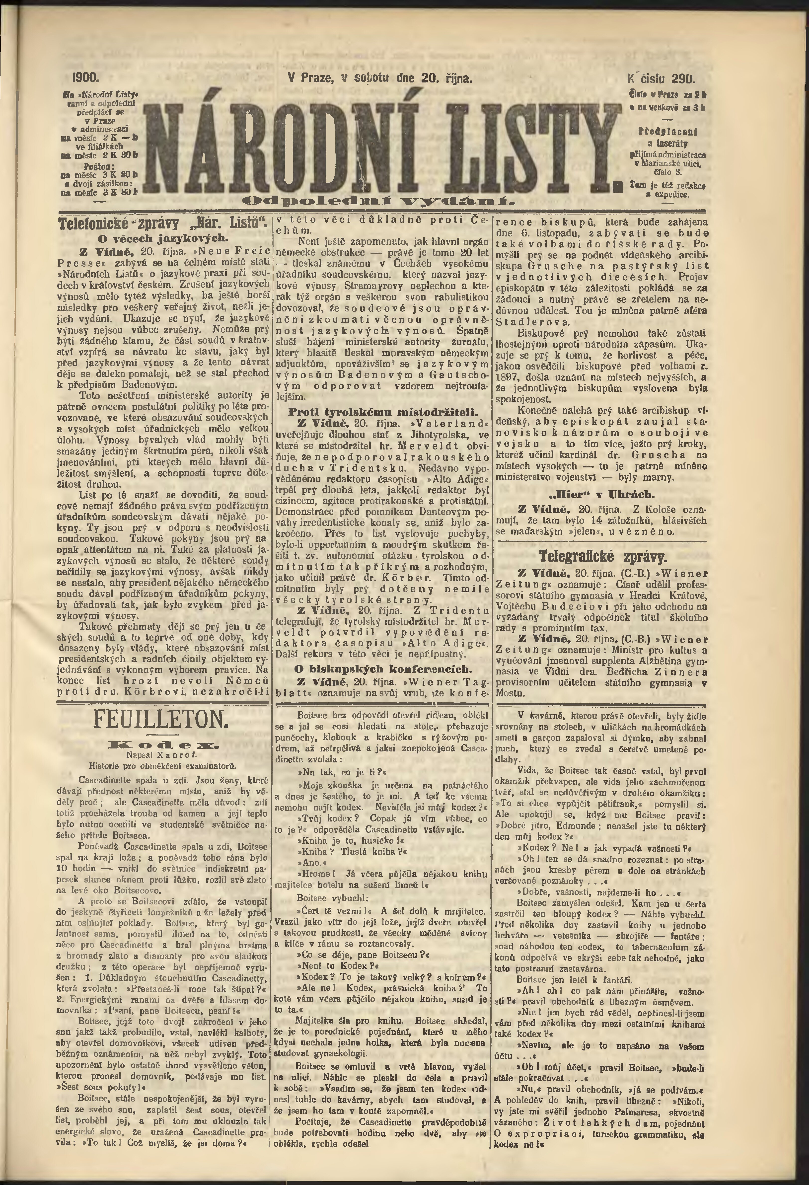 * Datum vydání výtisku: 20.10.1900 Číslo výtisku: 290 Poznámky k výtisku: odpolední vydání;