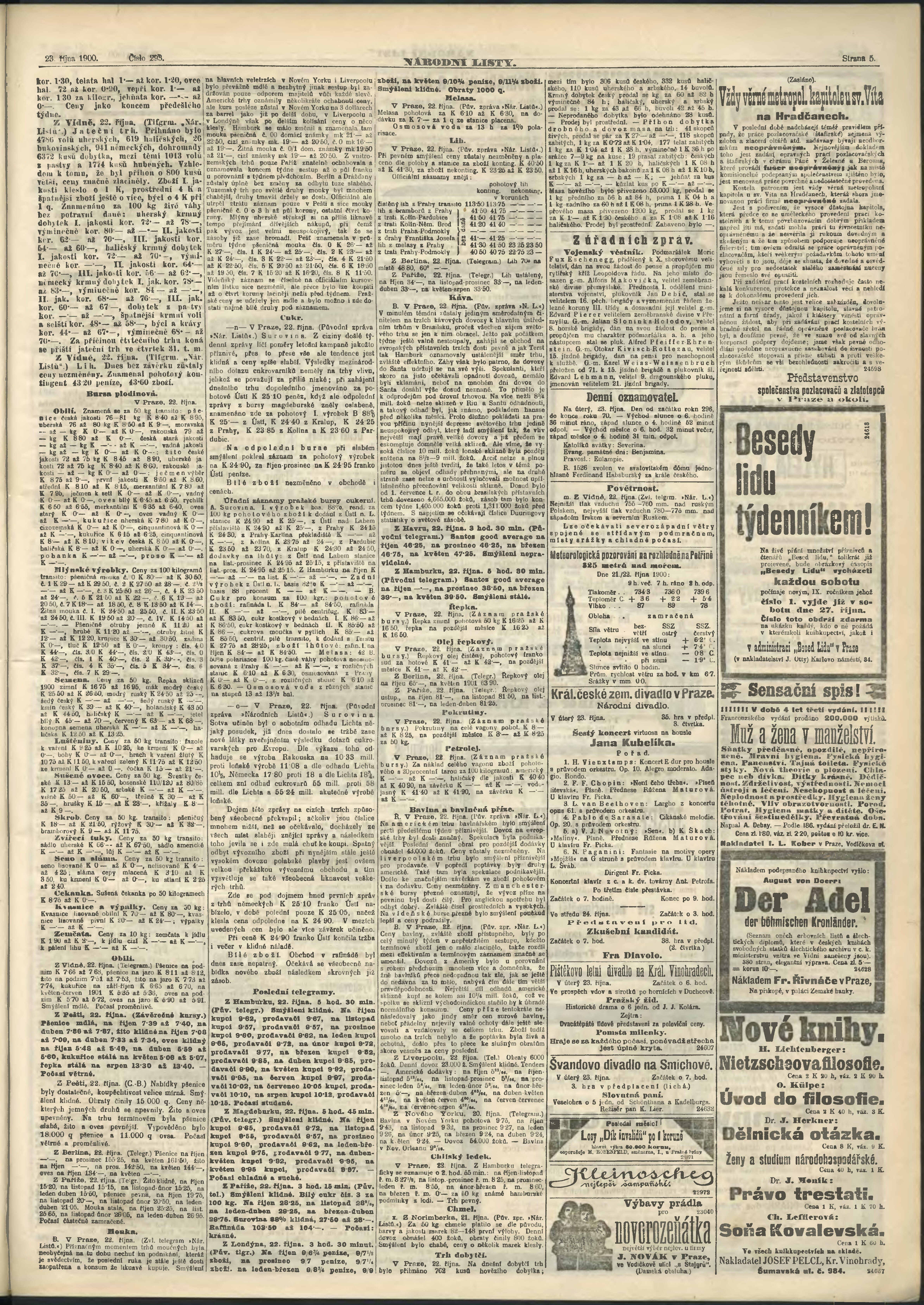 * Datum vydání výtisku: 23.10.1900 Číslo výtisku: 293 Poznámky k výtisku: ranní vydání;