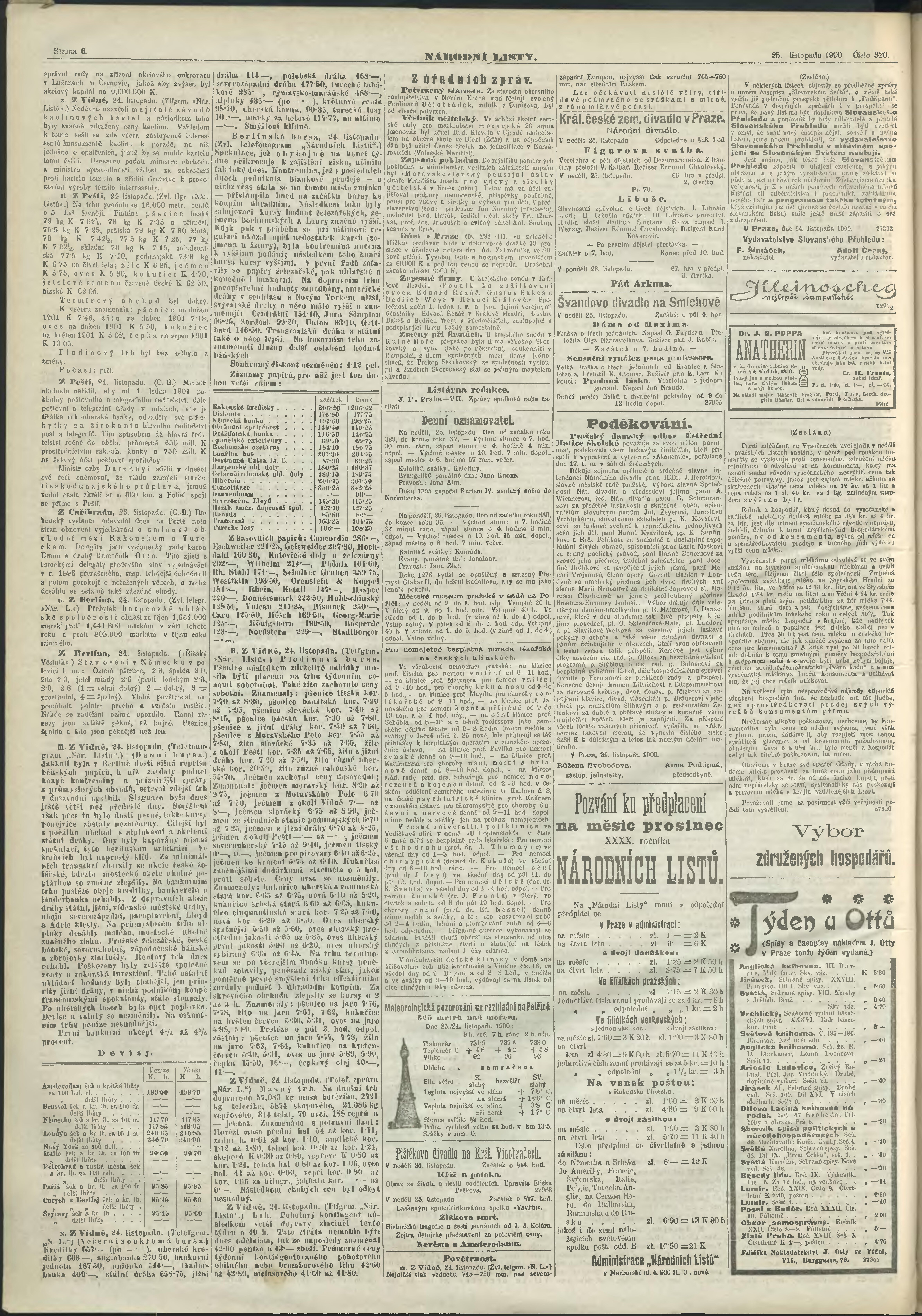 * Datum vydání výtisku: 25.11.1900 Číslo výtisku: 326 Poznámky k výtisku: ranní vydání;