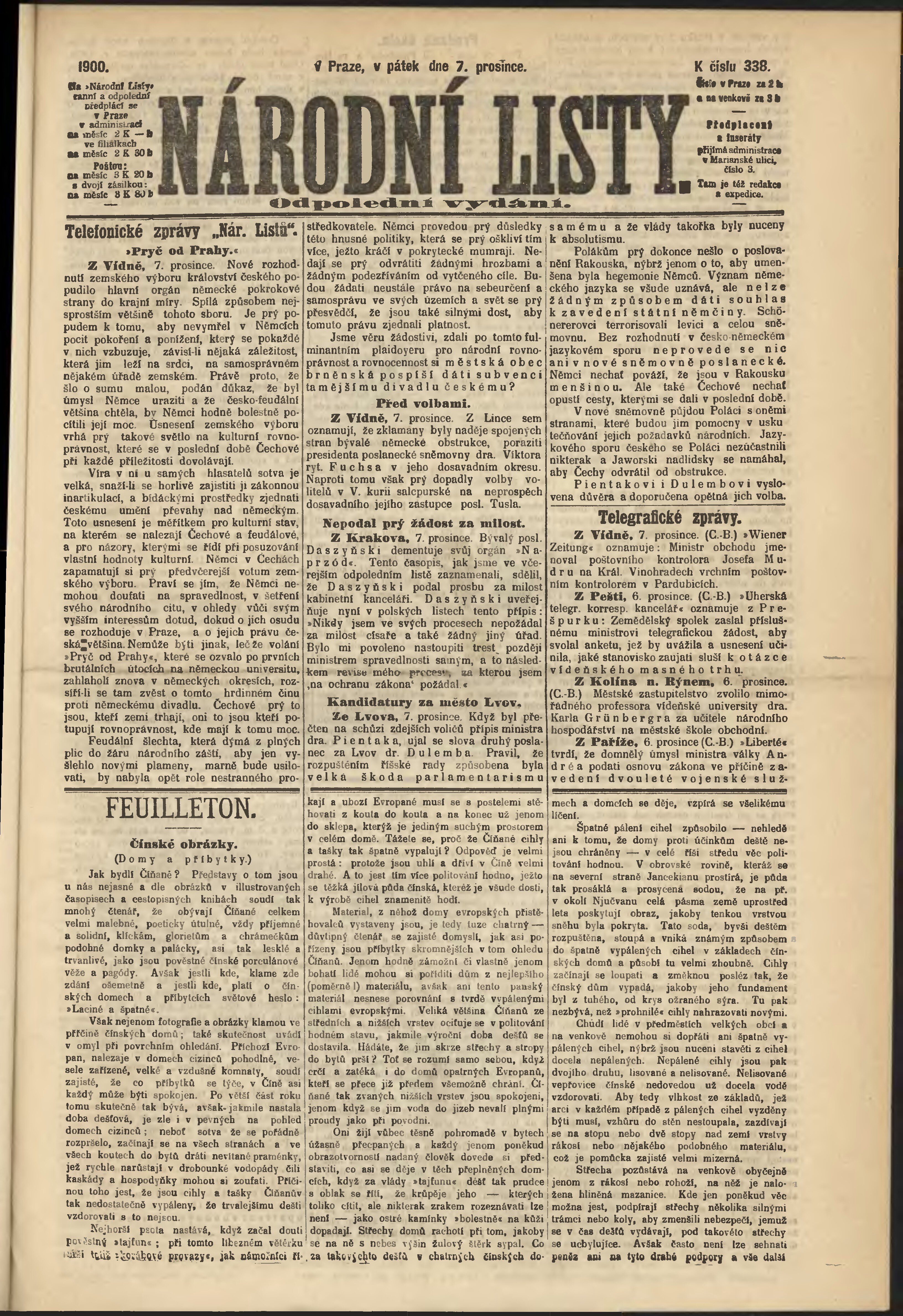 * Datum vydání výtisku: 7.12.1900 Číslo výtisku: 338 Poznámky k výtisku: odpolední vydání;