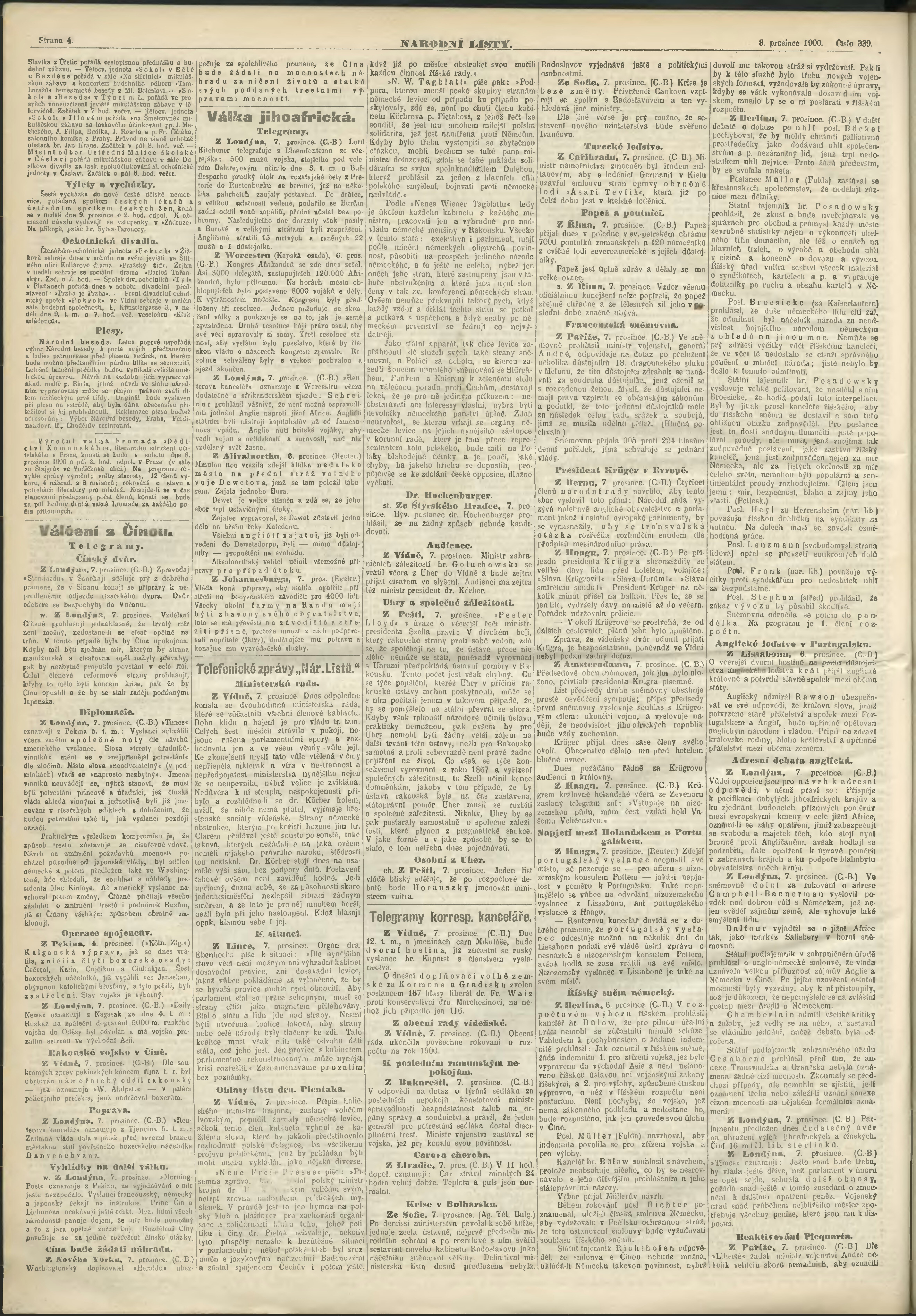 * Datum vydání výtisku: 8.12.1900 Číslo výtisku: 339 Poznámky k výtisku: ranní vydání;