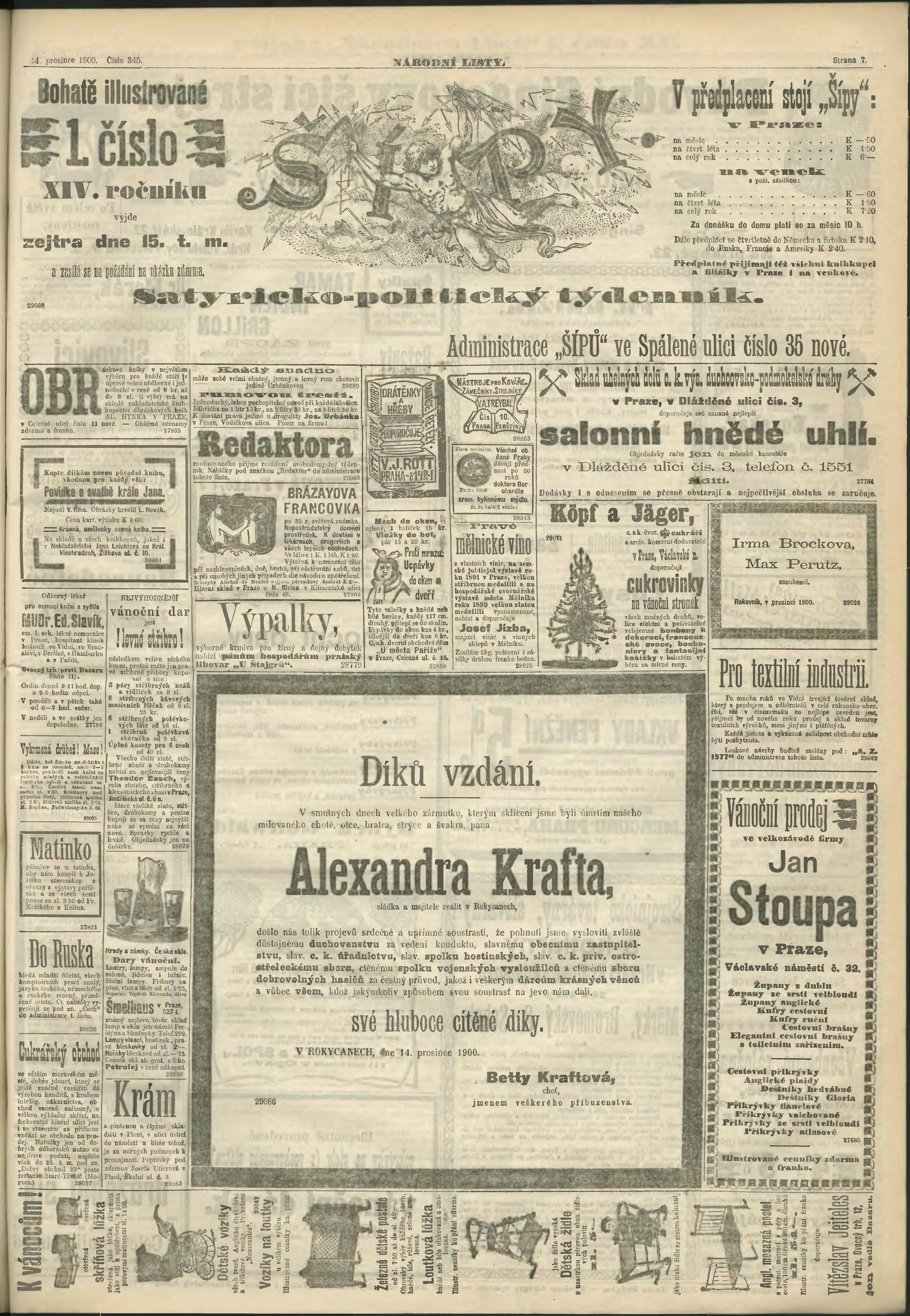 * Datum vydání výtisku: 14.12.1900 Číslo výtisku: 345 Poznámky k výtisku: ranní vydání;