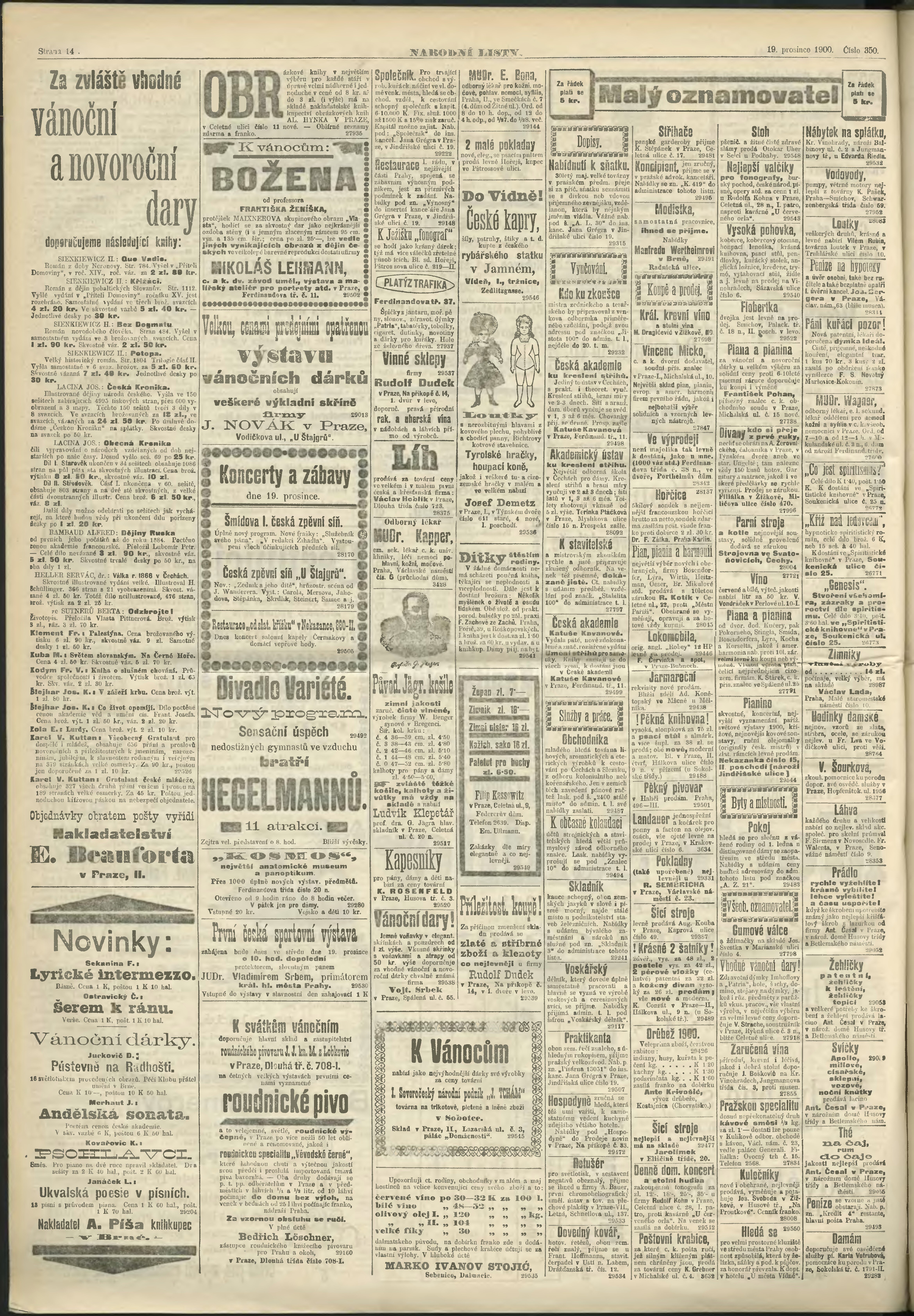 * Datum vydání výtisku: 19.12.1900 Číslo výtisku: 350 Poznámky k výtisku: ranní vydání;