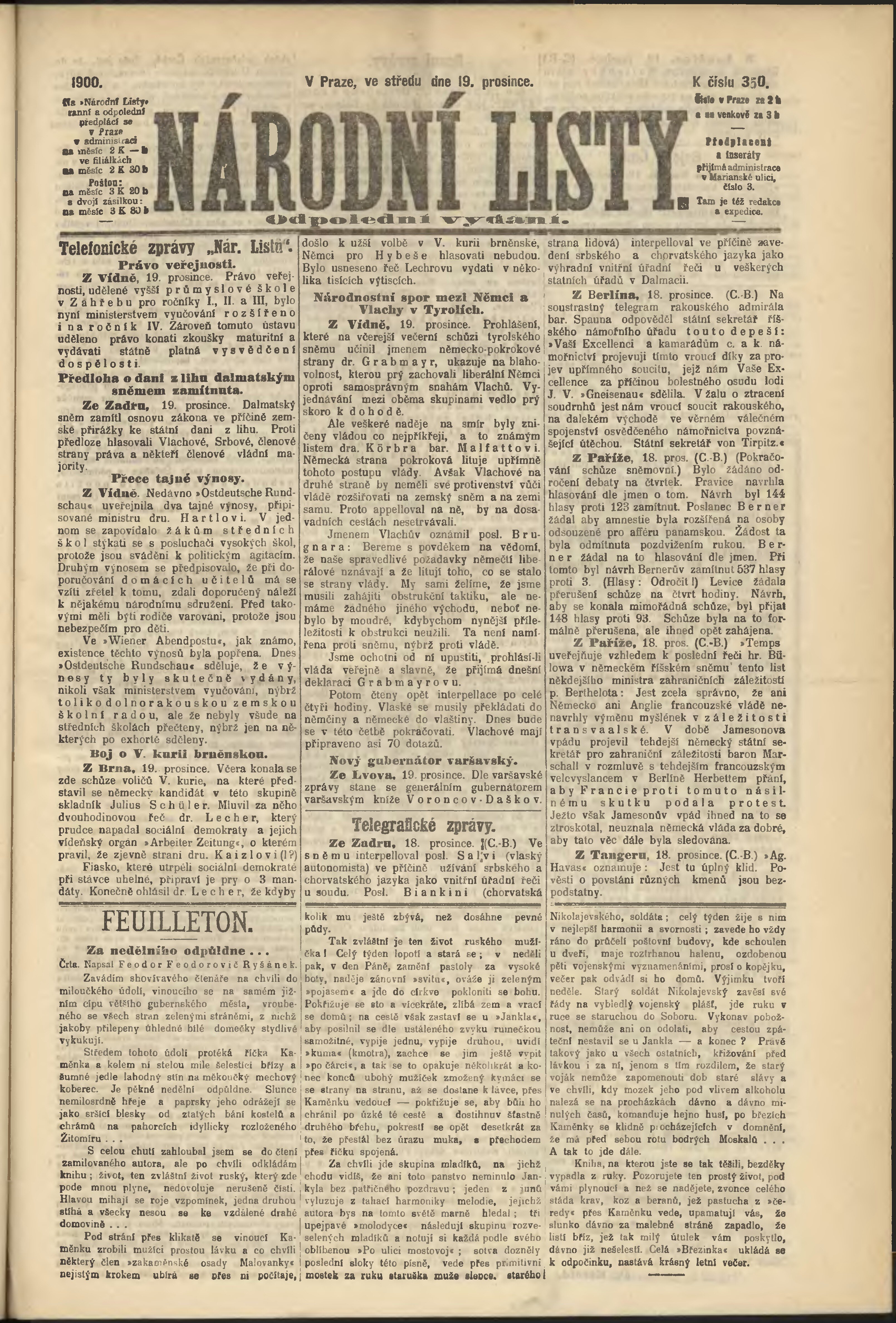 * Datum vydání výtisku: 19.12.1900 Číslo výtisku: 350 Poznámky k výtisku: odpolední vydání;