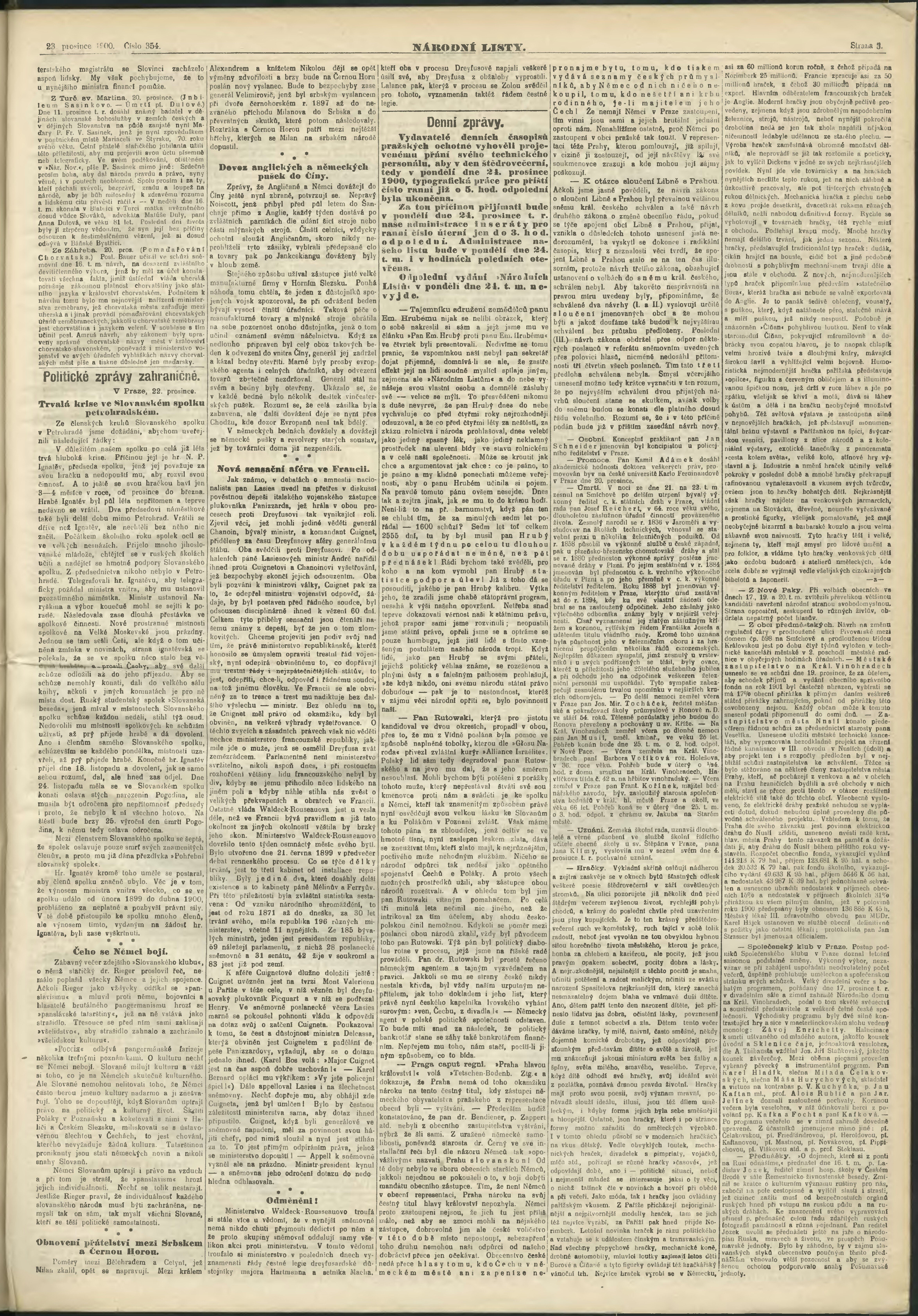 * Datum vydání výtisku: 23.12.1900 Číslo výtisku: 354 Poznámky k výtisku: ranní vydání;