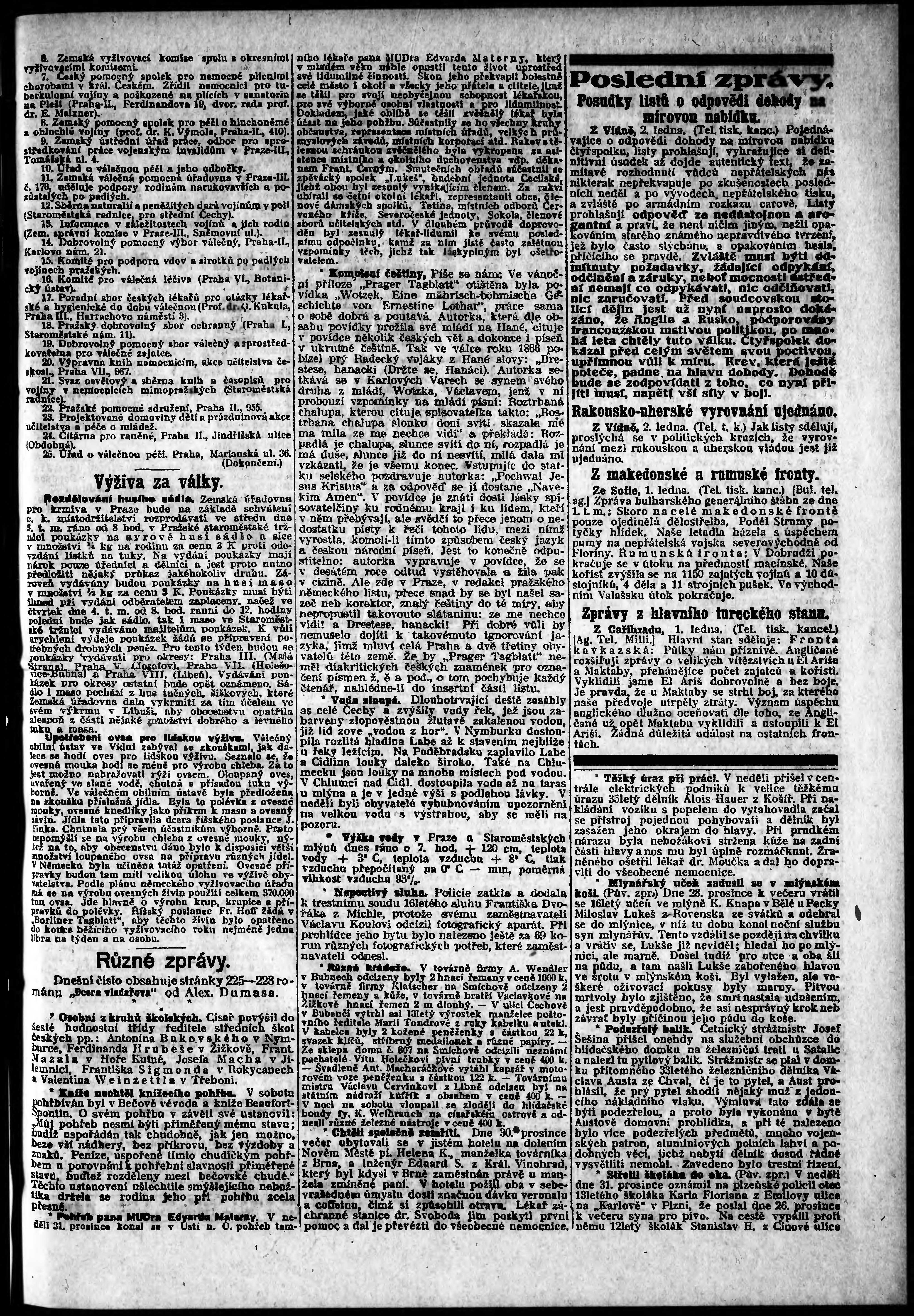 * Datum vydání výtisku: 2.1.1917 Číslo výtisku: 1 Poznámky k výtisku: odpolední vydání;