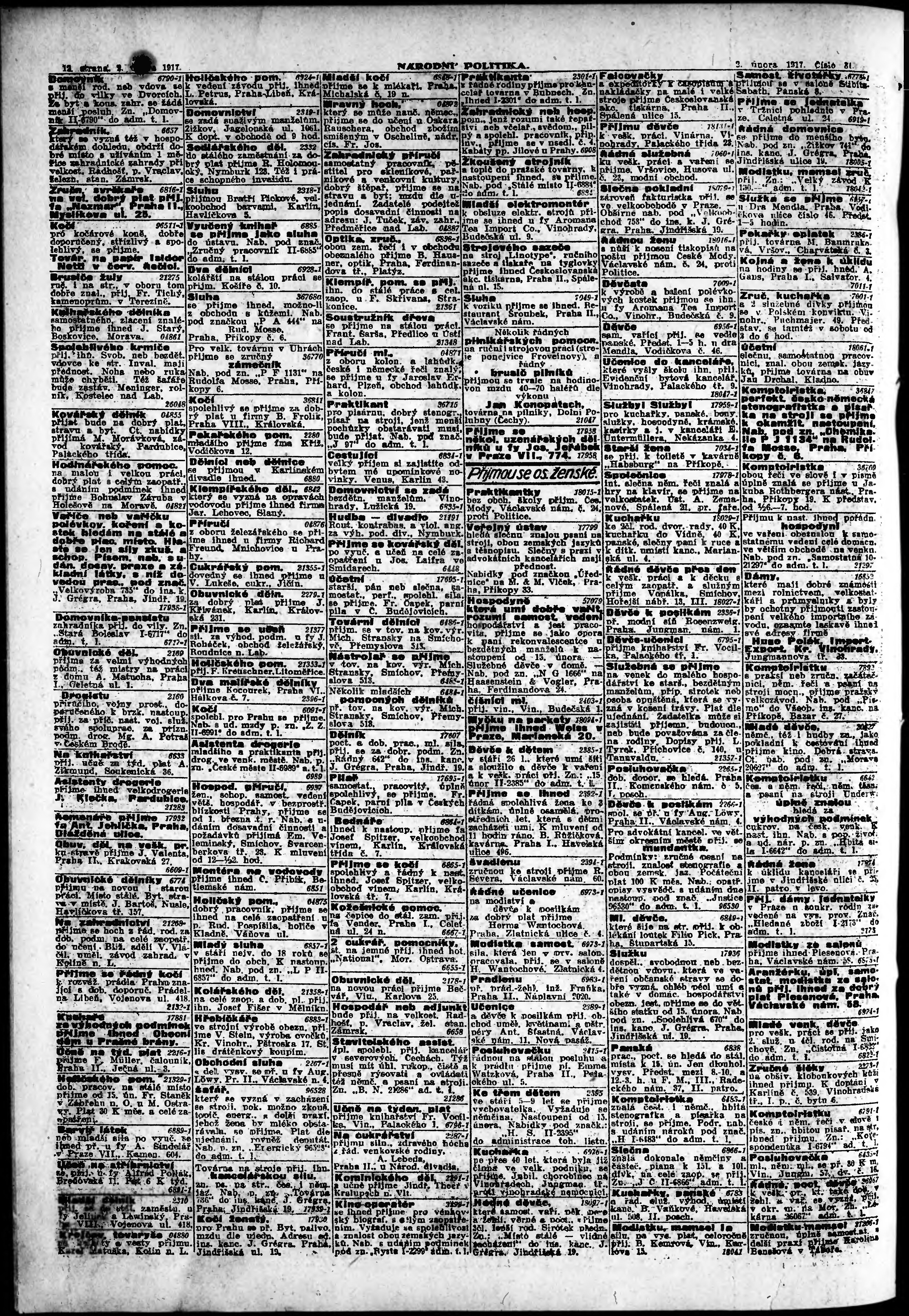 * Datum vydání výtisku: 2.2.1917 Číslo výtisku: 31 Poznámky k výtisku: ranní vydání;