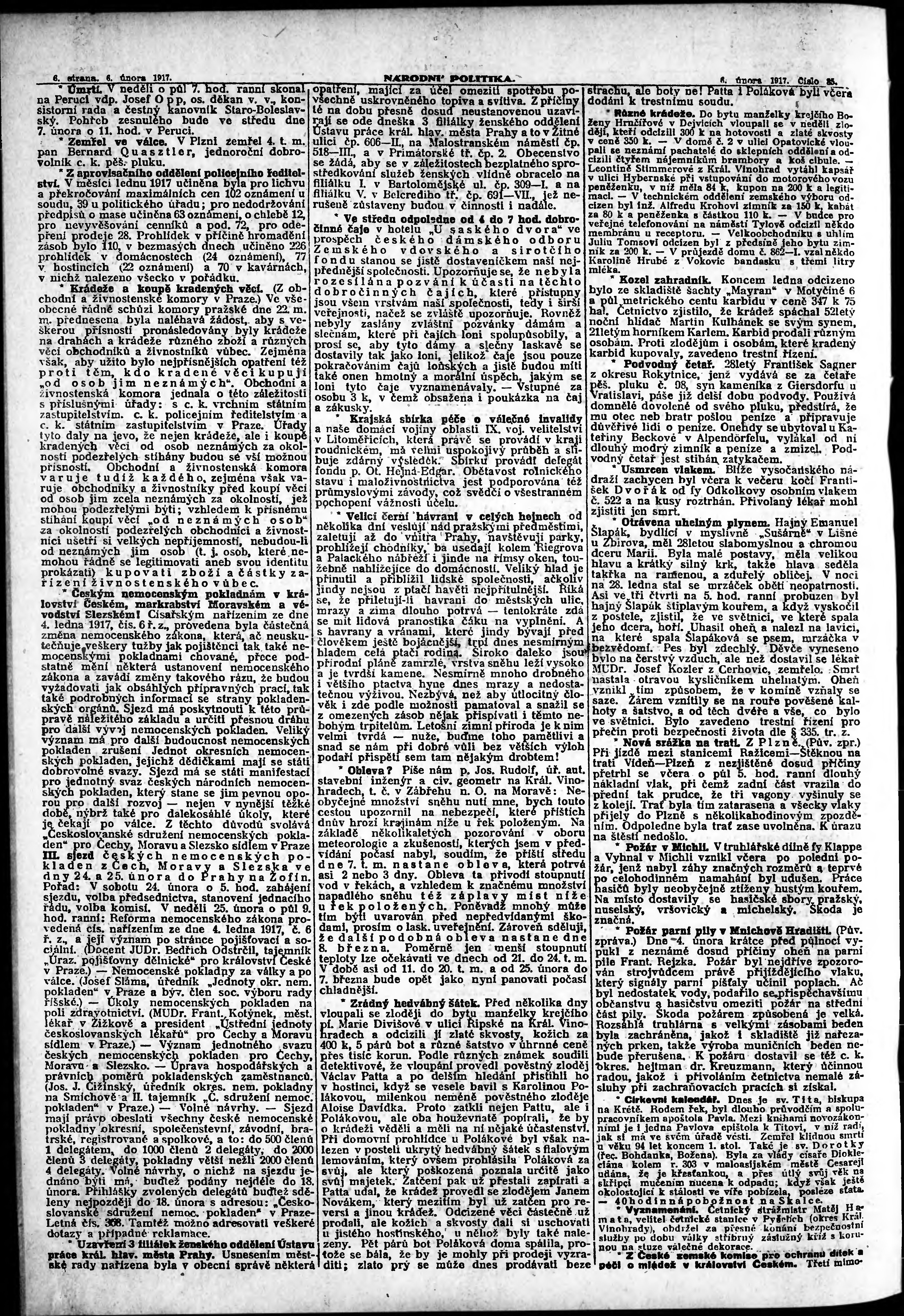 * Datum vydání výtisku: 6.2.1917 Číslo výtisku: 35 Poznámky k výtisku: ranní vydání; s. 9 - 10 není k dispozici;