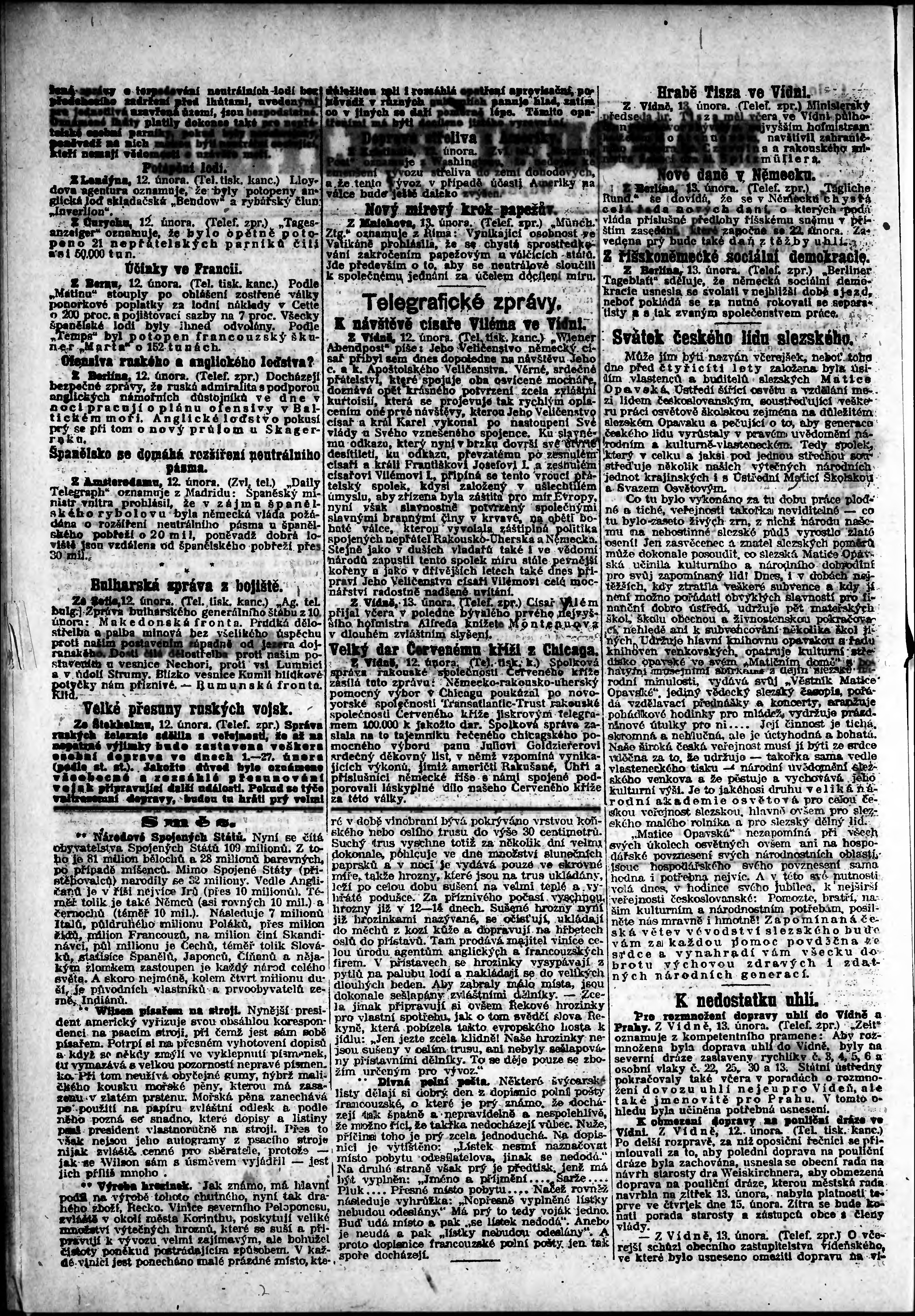 * Datum vydání výtisku: 13.2.1917 Číslo výtisku: 42 Poznámky k výtisku: odpolední vydání;