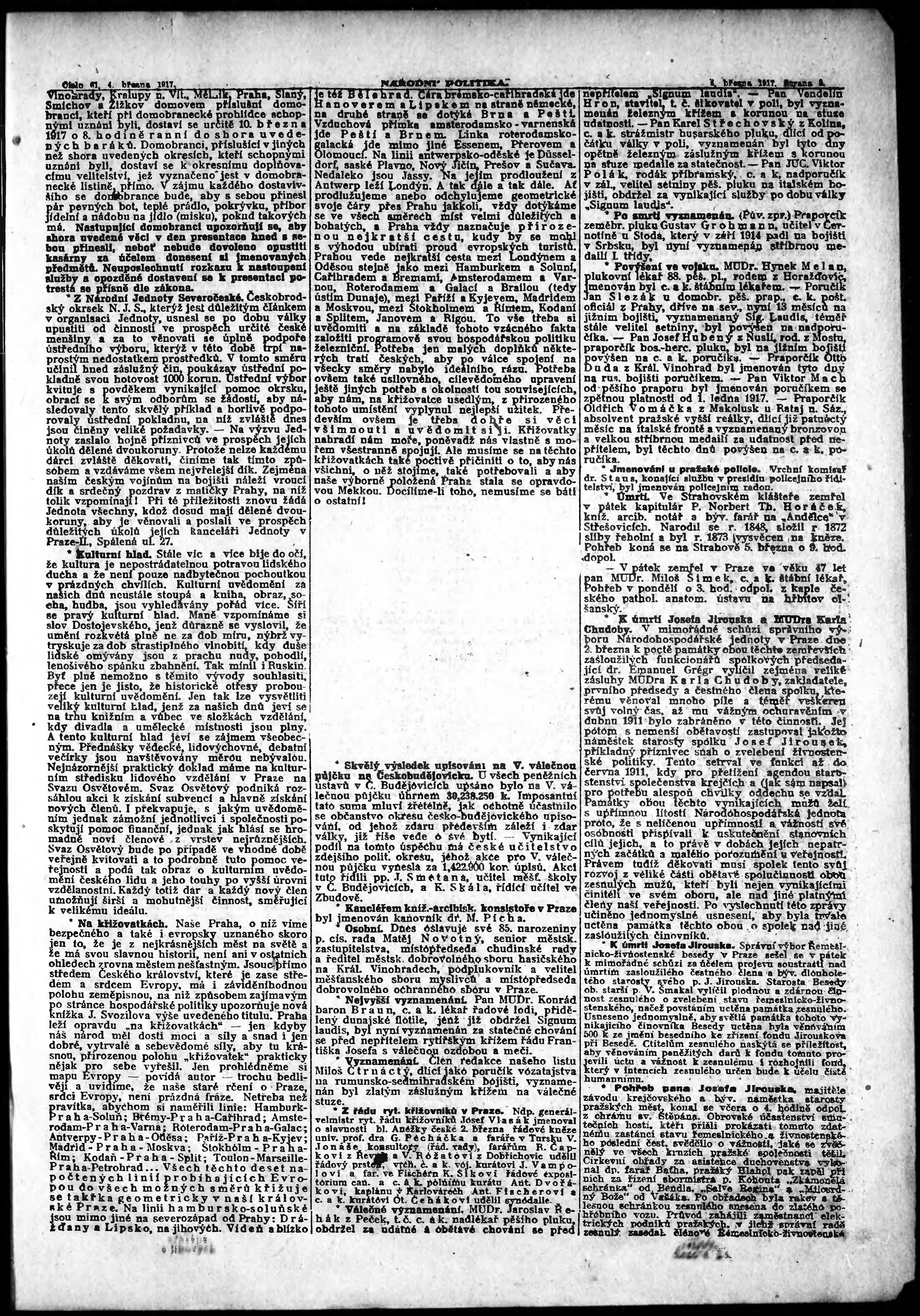* Datum vydání výtisku: 4.3.1917 Číslo výtisku: 61 Poznámky k výtisku: ranní vydání;