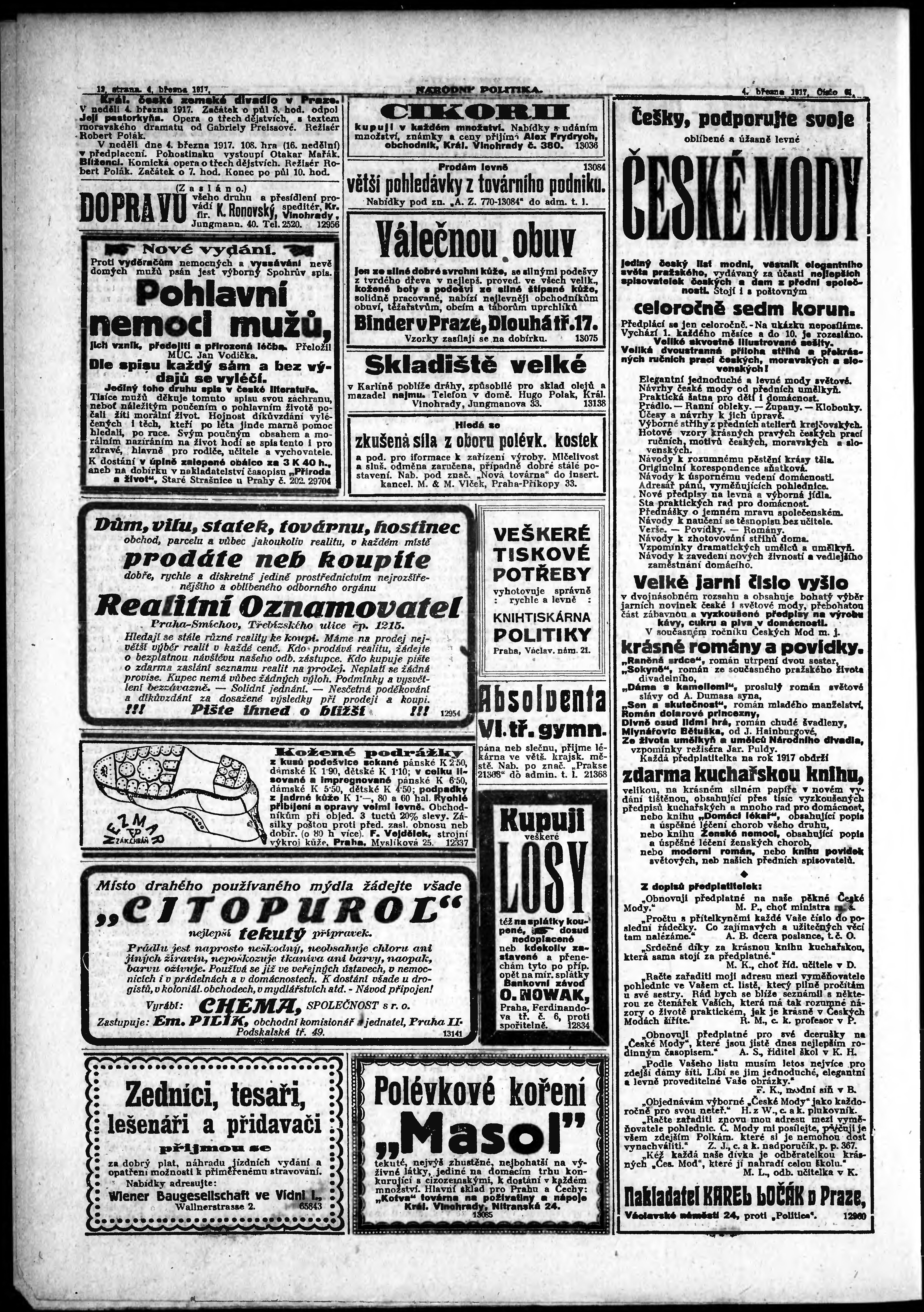 * Datum vydání výtisku: 4.3.1917 Číslo výtisku: 61 Poznámky k výtisku: ranní vydání;