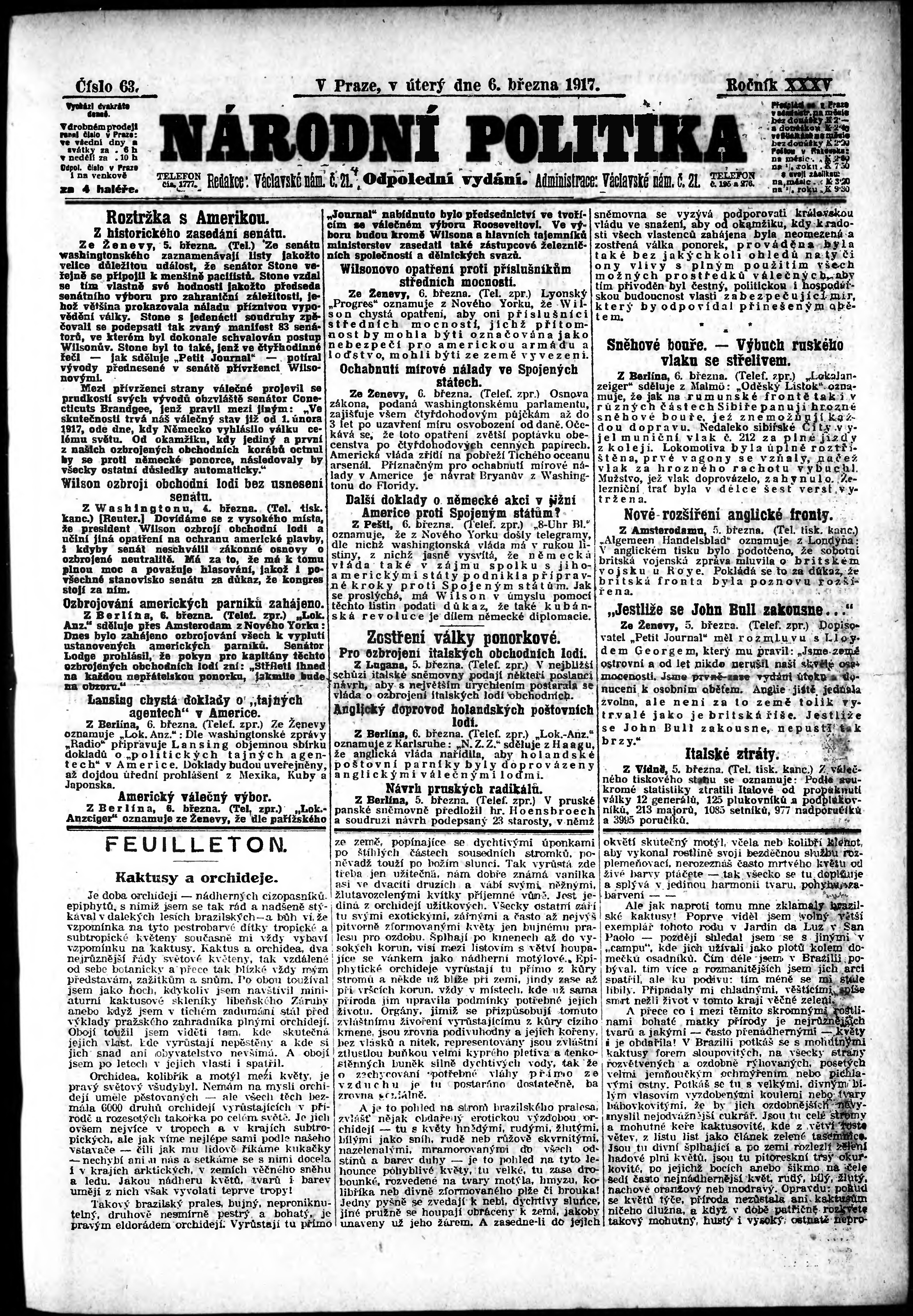 * Datum vydání výtisku: 6.3.1917 Číslo výtisku: 63 Poznámky k výtisku: odpolední vydání;