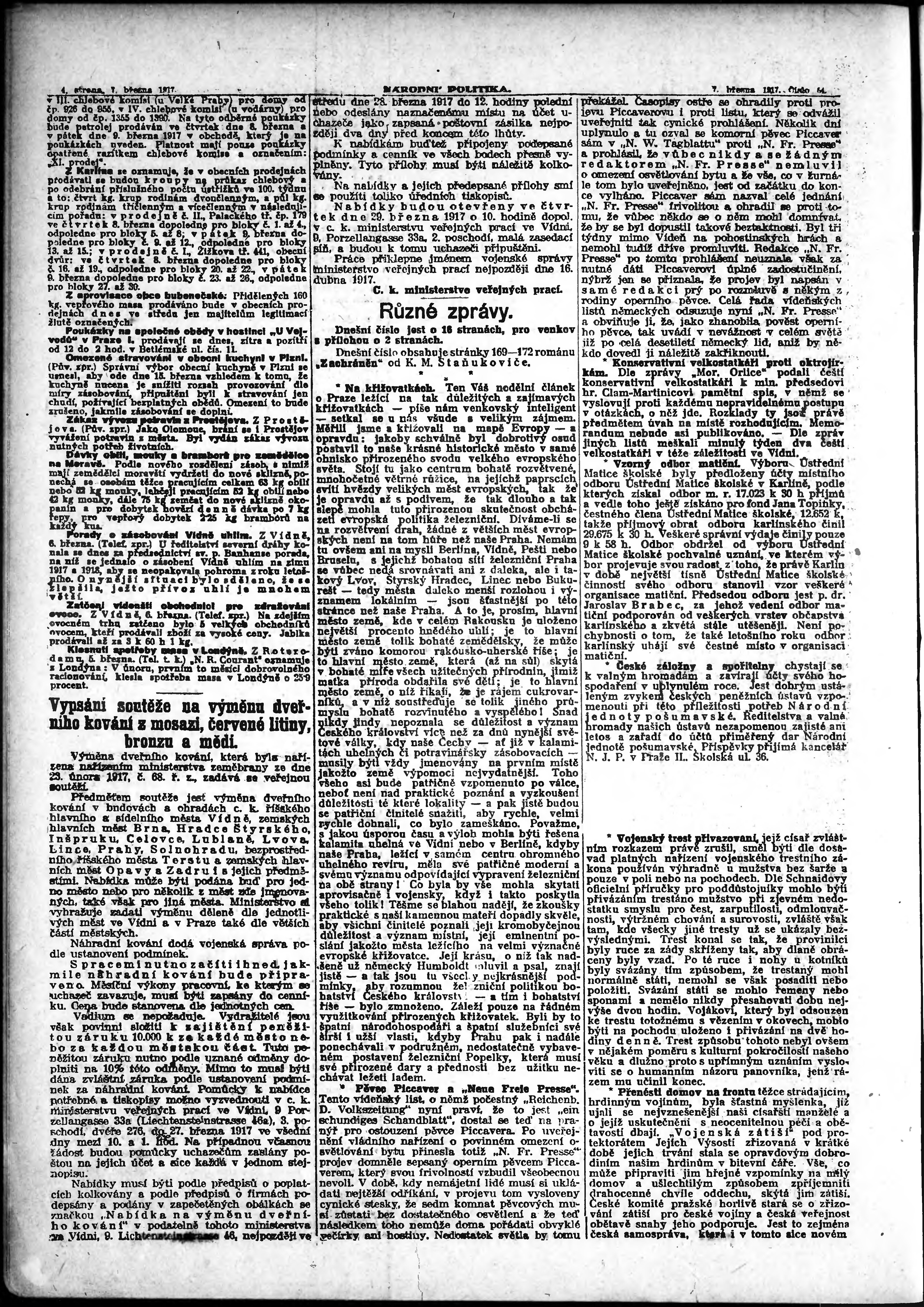 * Datum vydání výtisku: 7.3.1917 Číslo výtisku: 64 Poznámky k výtisku: ranní vydání;