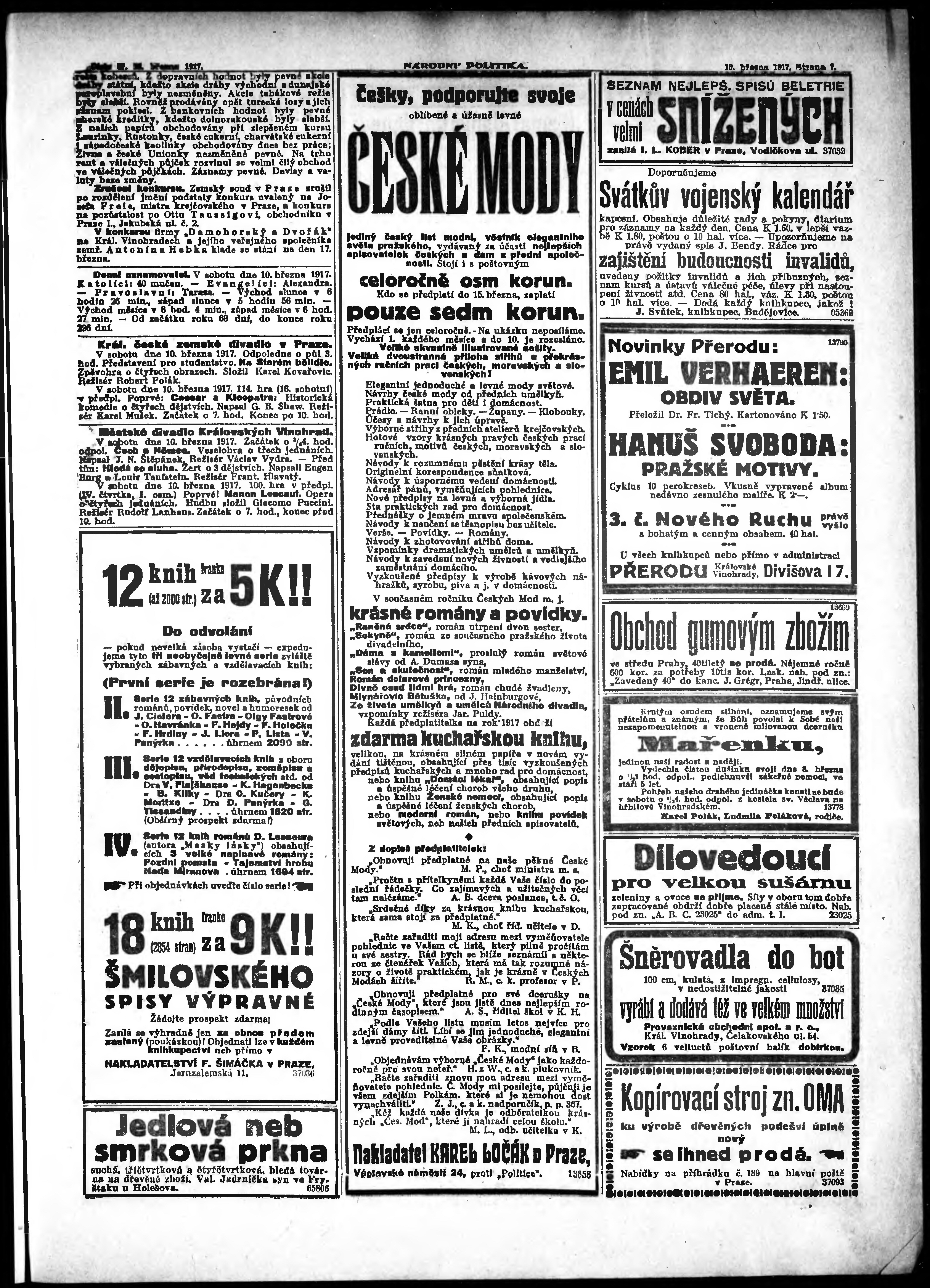 * Datum vydání výtisku: 10.3.1917 Číslo výtisku: 67 Poznámky k výtisku: ranní vydání;