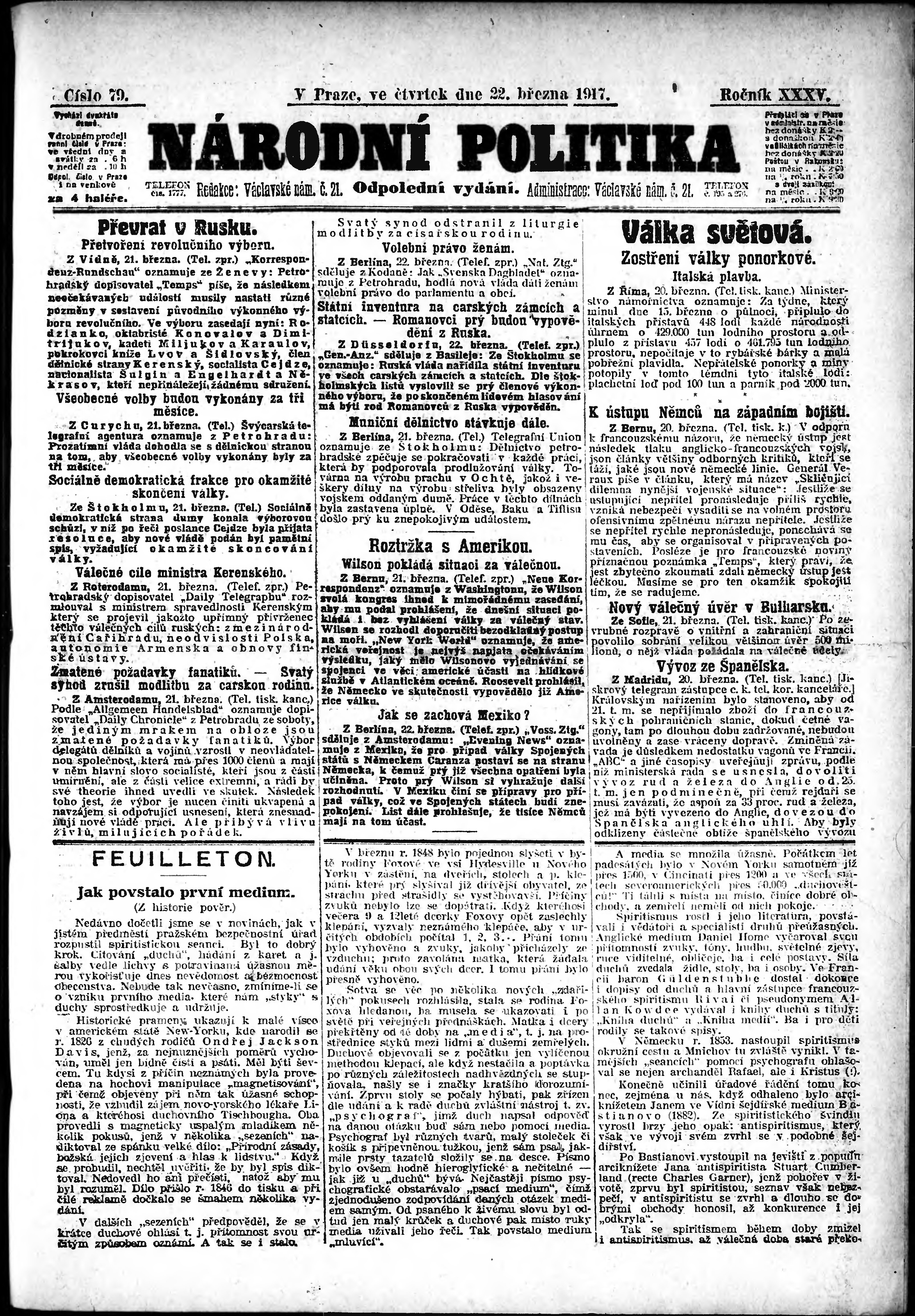 * Datum vydání výtisku: 22.3.1917 Číslo výtisku: 79 Poznámky k výtisku: odpolední vydání;