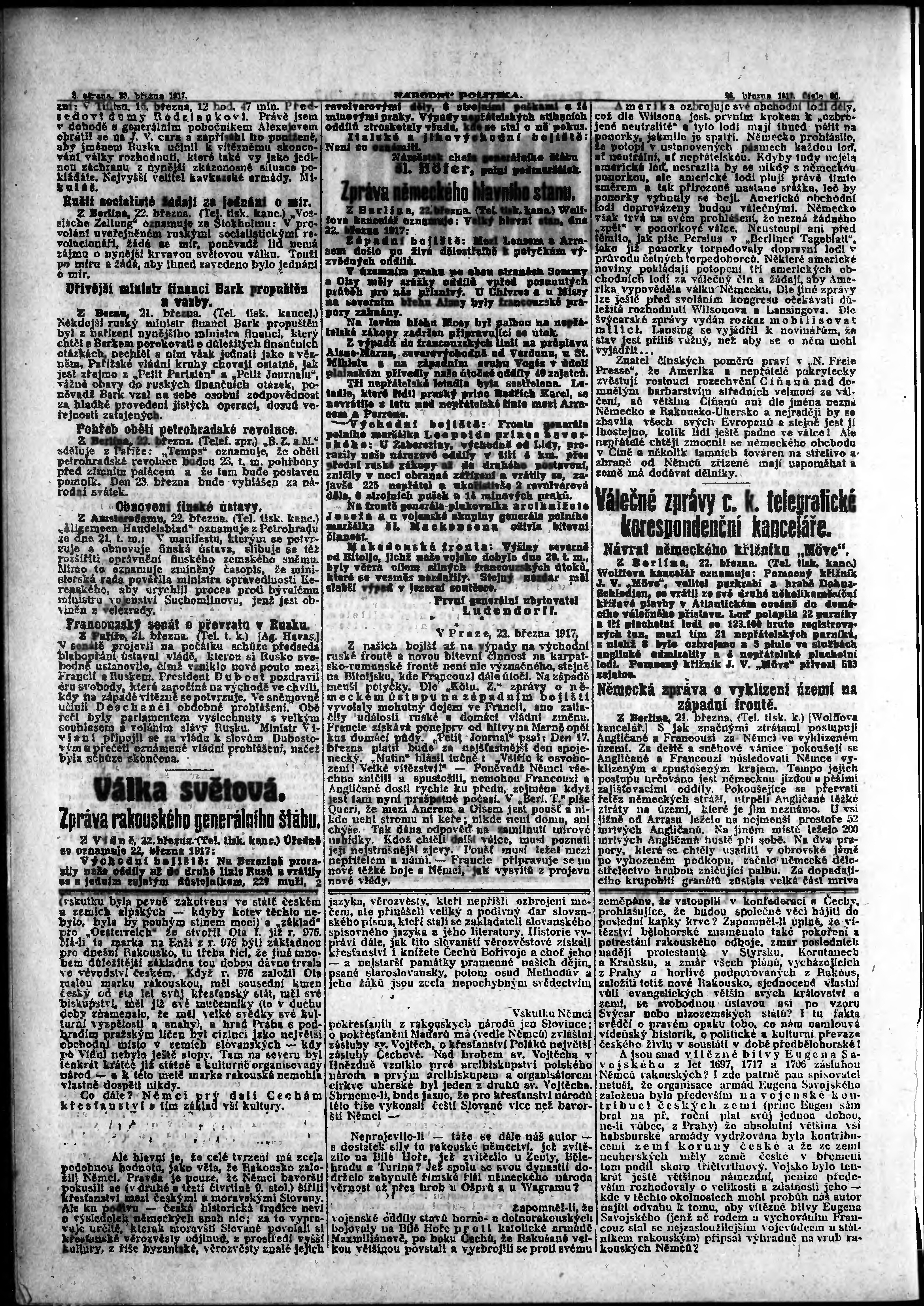 * Datum vydání výtisku: 23.3.1917 Číslo výtisku: 80 Poznámky k výtisku: ranní vydání;