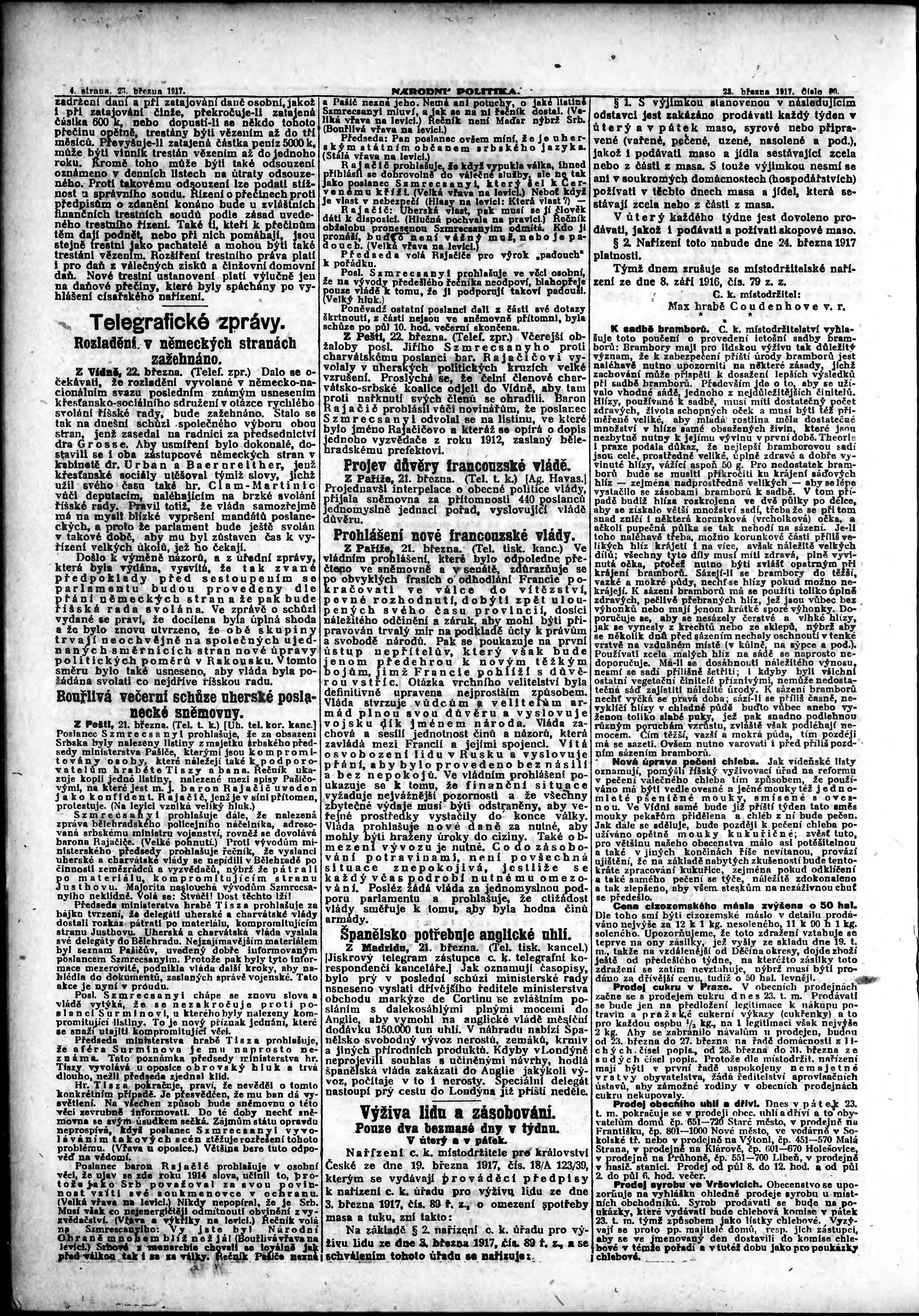 * Datum vydání výtisku: 23.3.1917 Číslo výtisku: 80 Poznámky k výtisku: ranní vydání;