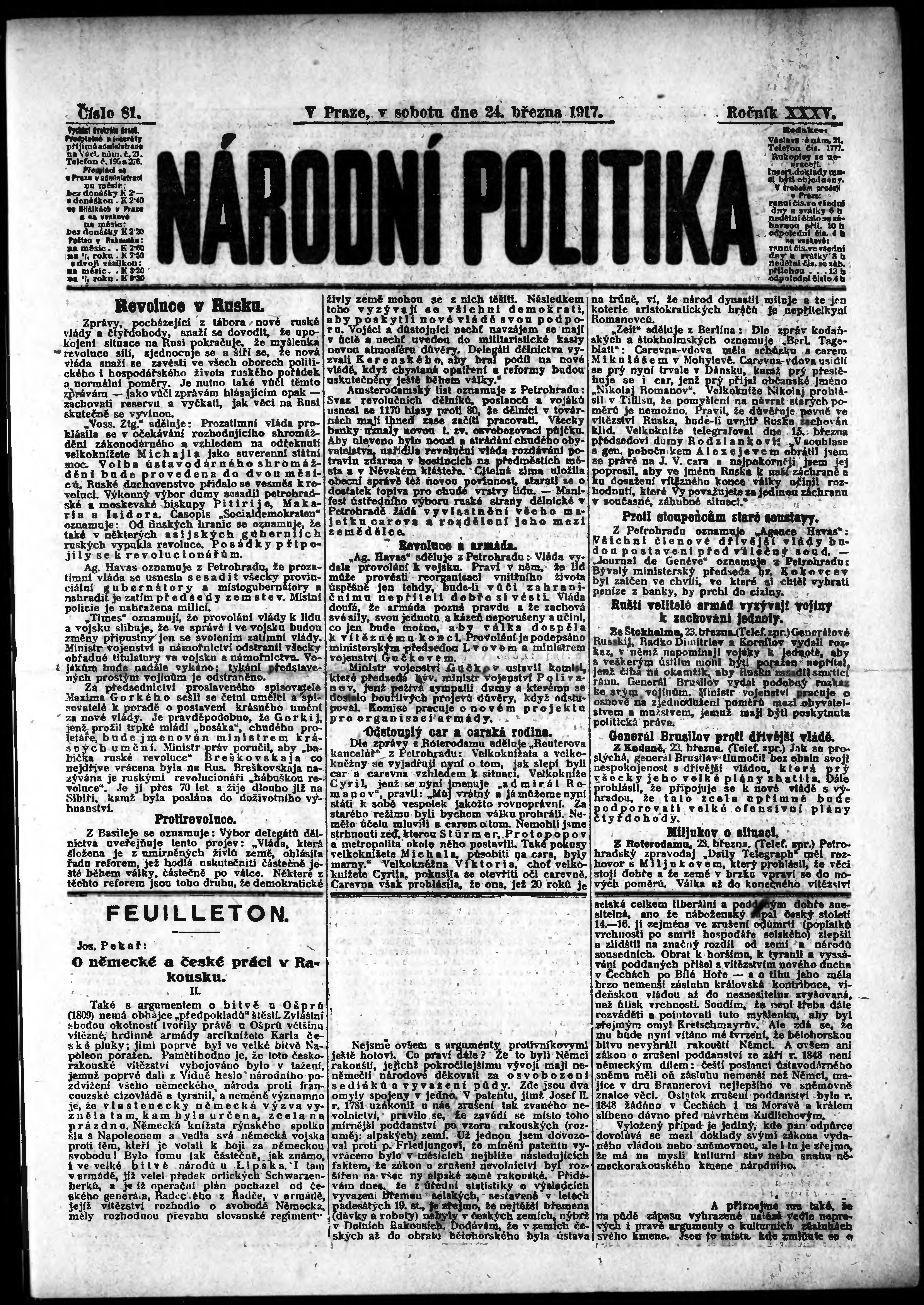 ranní vydání; s. 9 - 10 není k dispozici;
