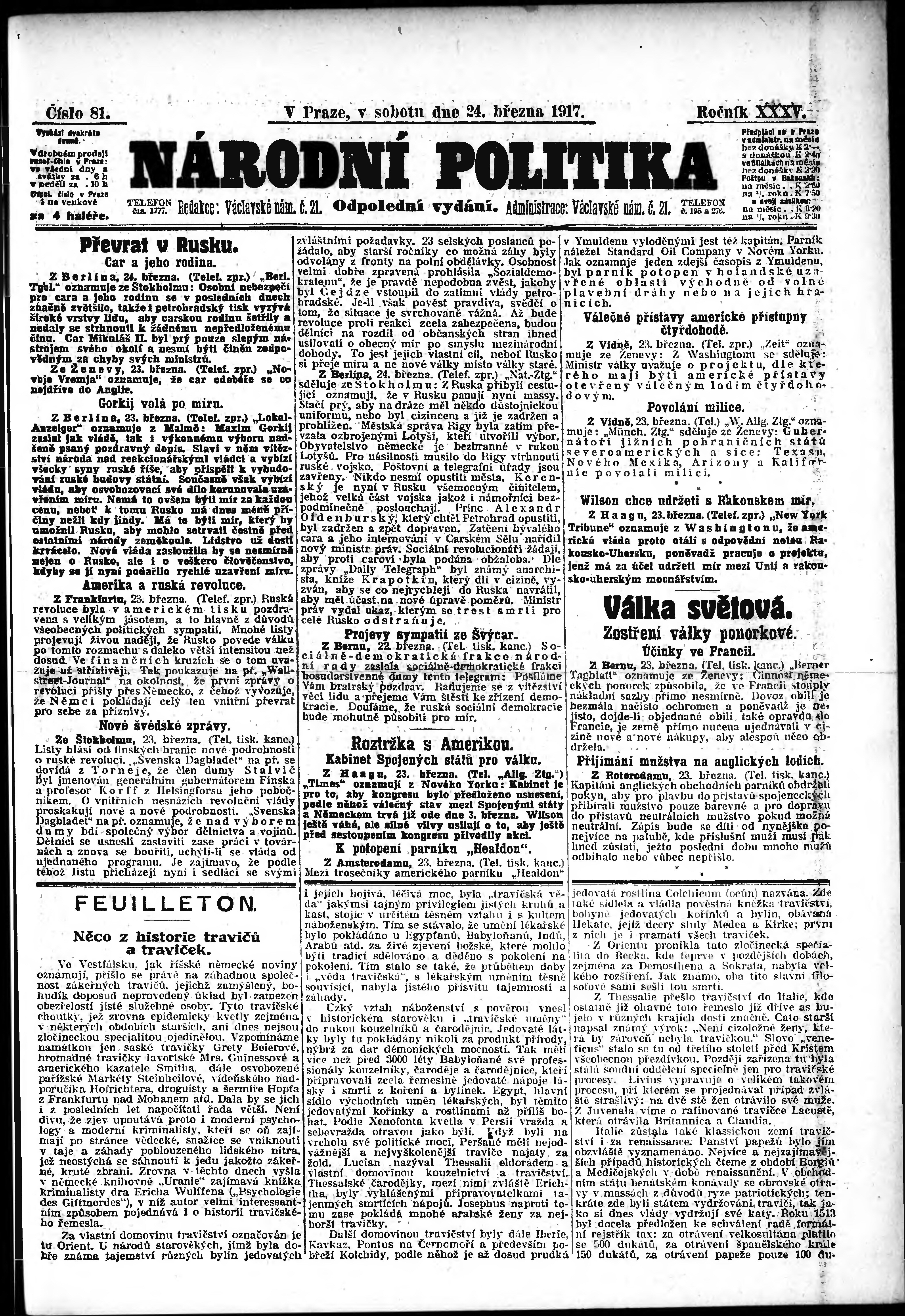 * Datum vydání výtisku: 24.3.1917 Číslo výtisku: 81 Poznámky k výtisku: odpolední vydání;
