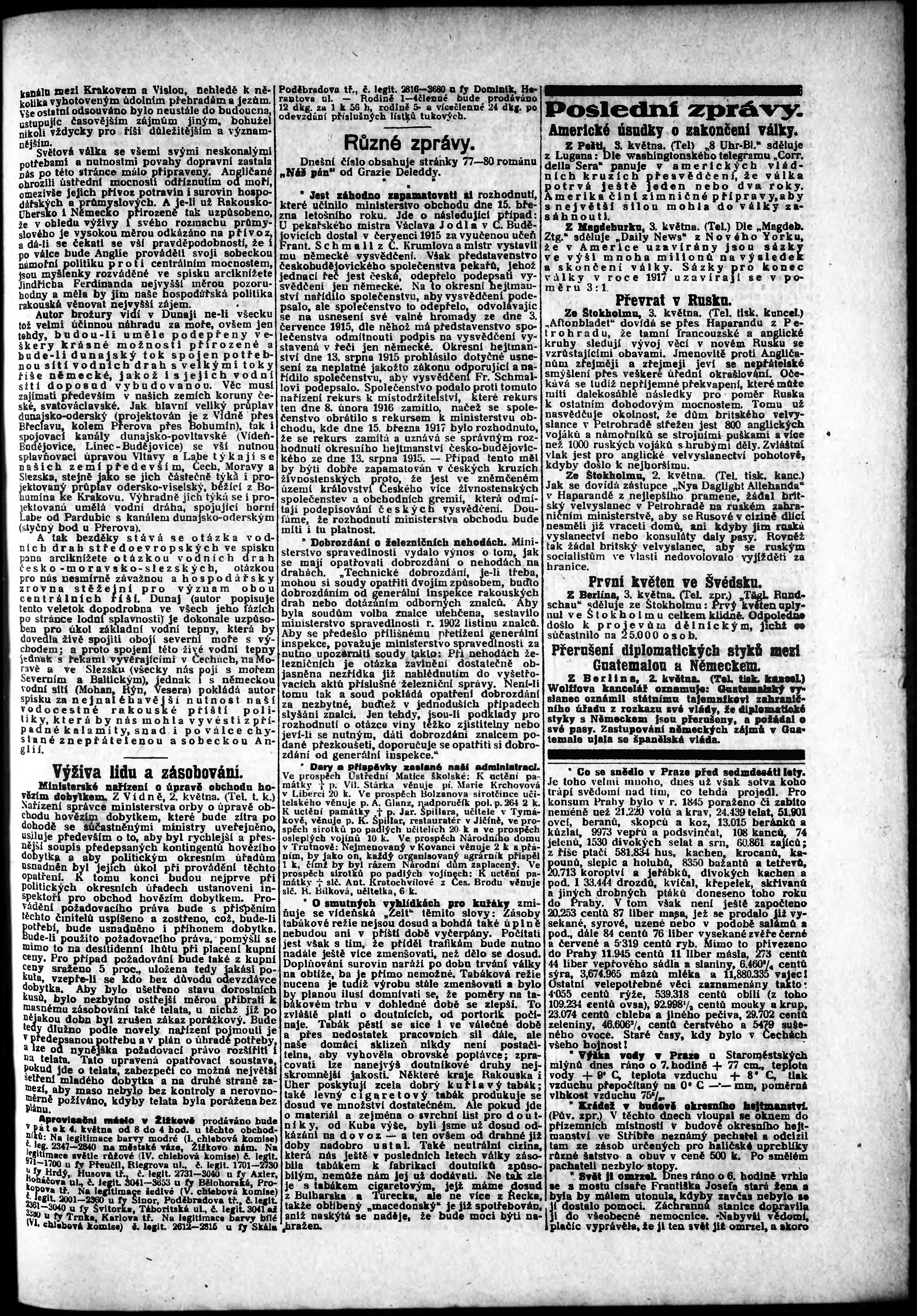 * Datum vydání výtisku: 3.5.1917 Číslo výtisku: 120 Poznámky k výtisku: odpolední vydání;