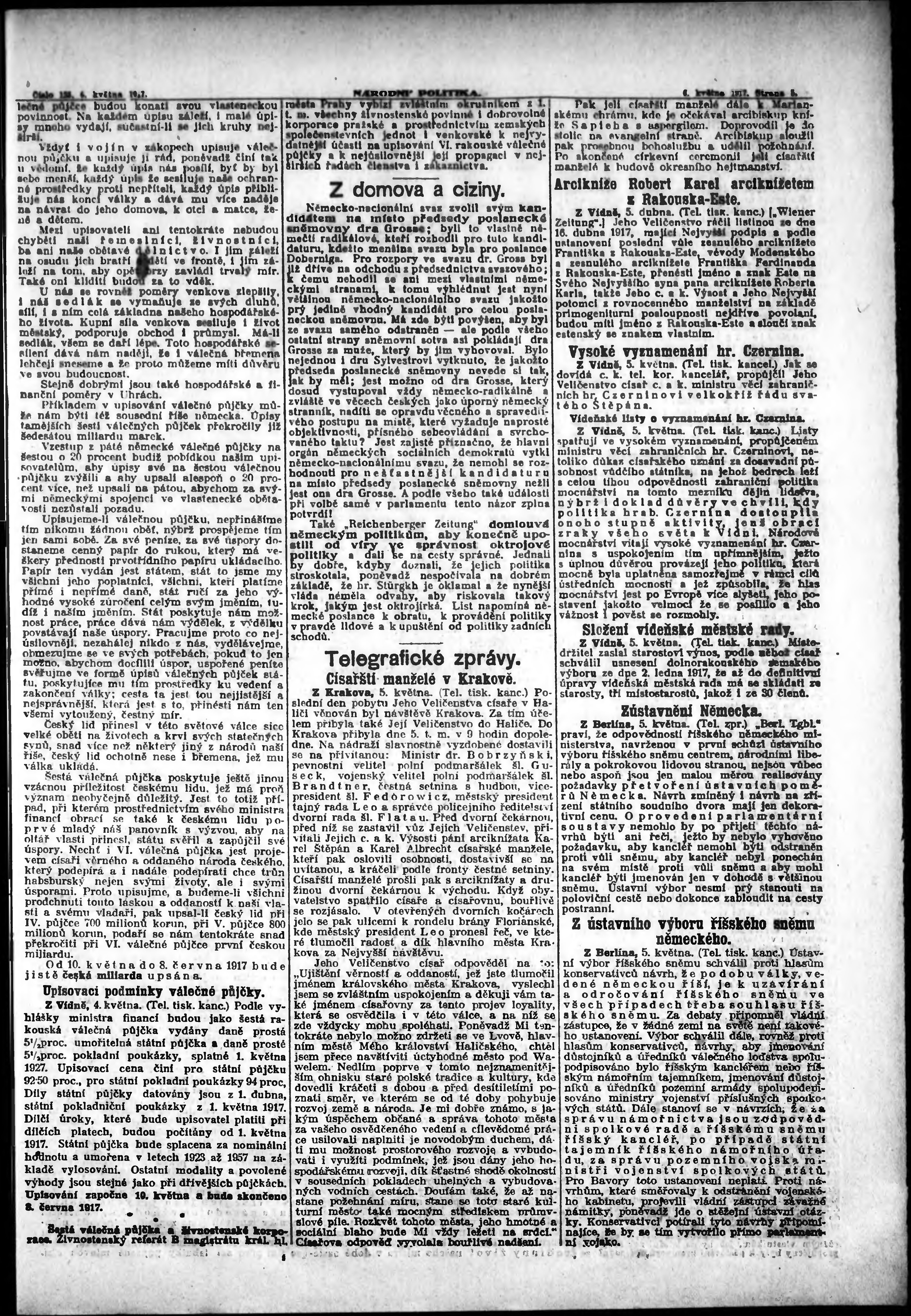 * Datum vydání výtisku: 6.5.1917 Číslo výtisku: 123 Poznámky k výtisku: ranní vydání;
