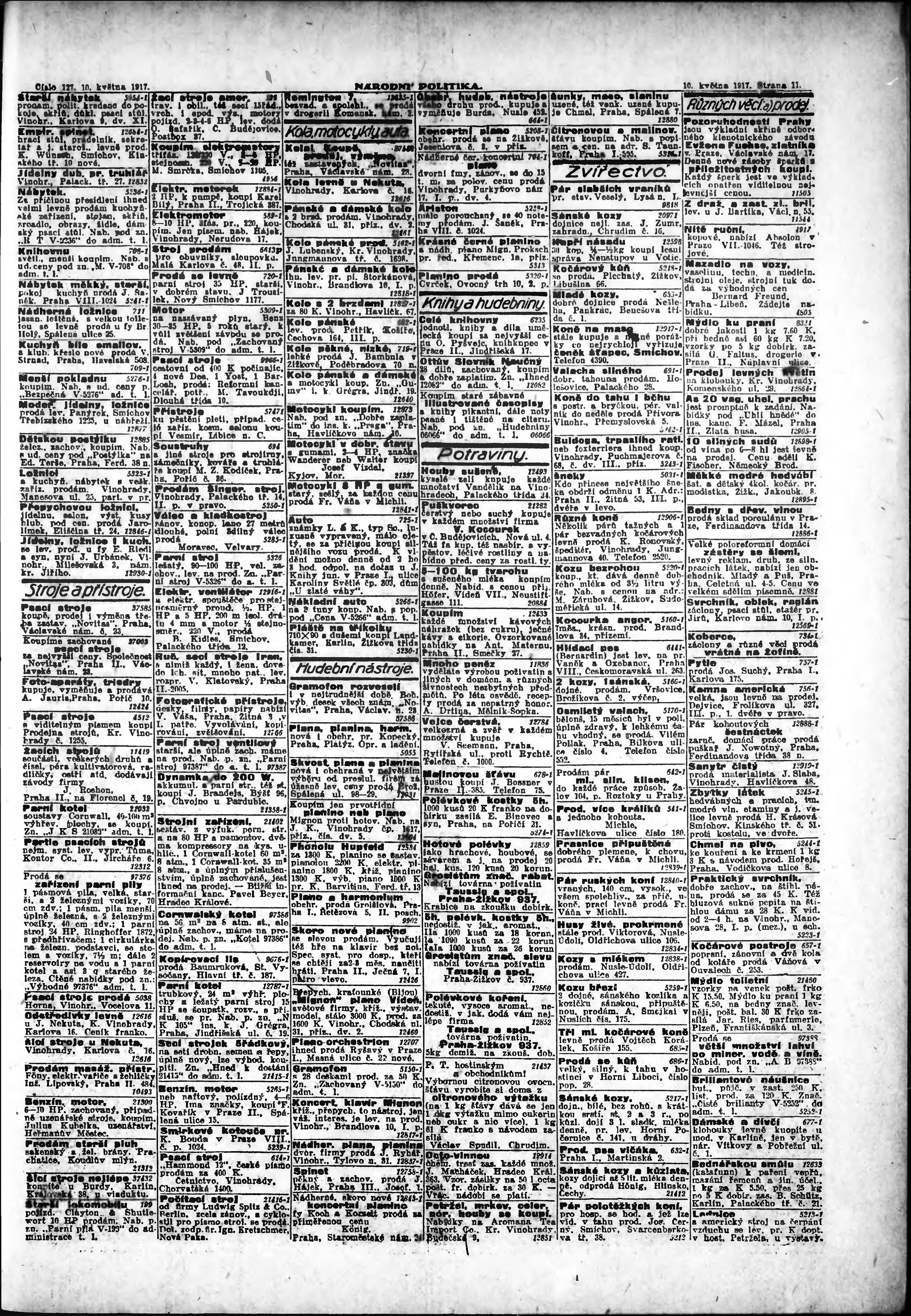 * Datum vydání výtisku: 10.5.1917 Číslo výtisku: 127 Poznámky k výtisku: ranní vydání; s. 9 - 10 není k dispozici;