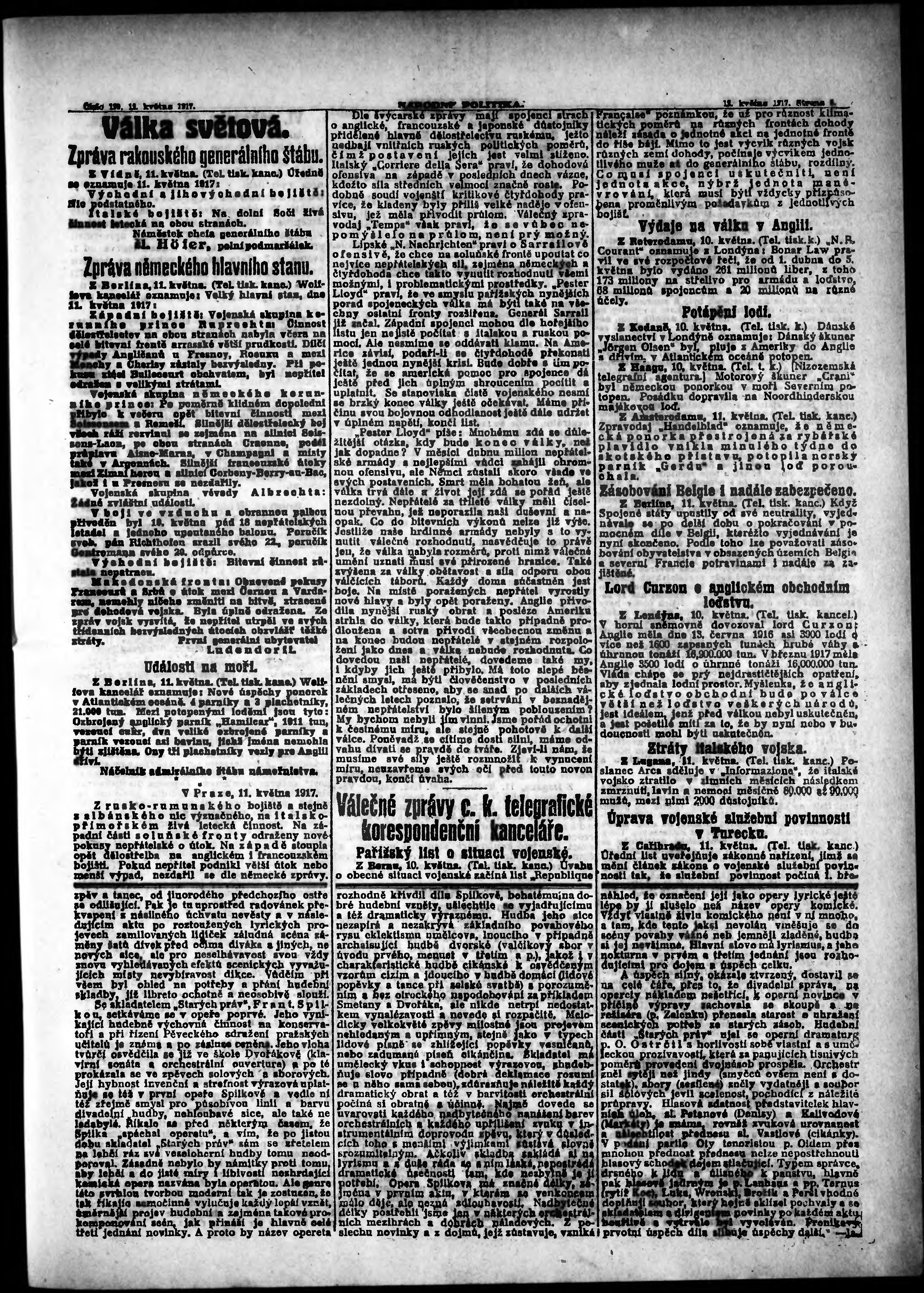 * Datum vydání výtisku: 12.5.1917 Číslo výtisku: 129 Poznámky k výtisku: ranní vydání;