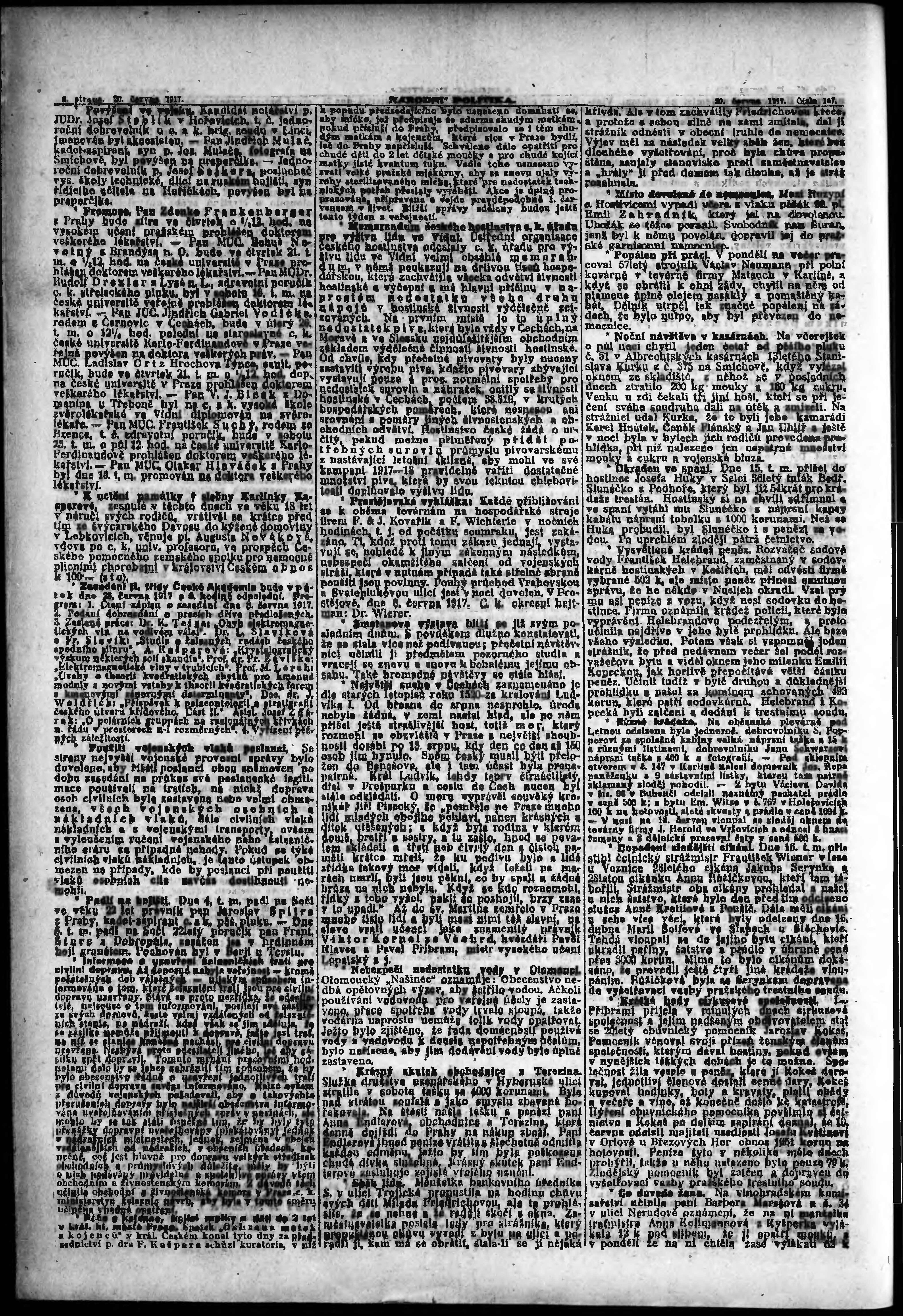 * Datum vydání výtisku: 20.6.1917 Číslo výtisku: 167 Poznámky k výtisku: ranní vydání;