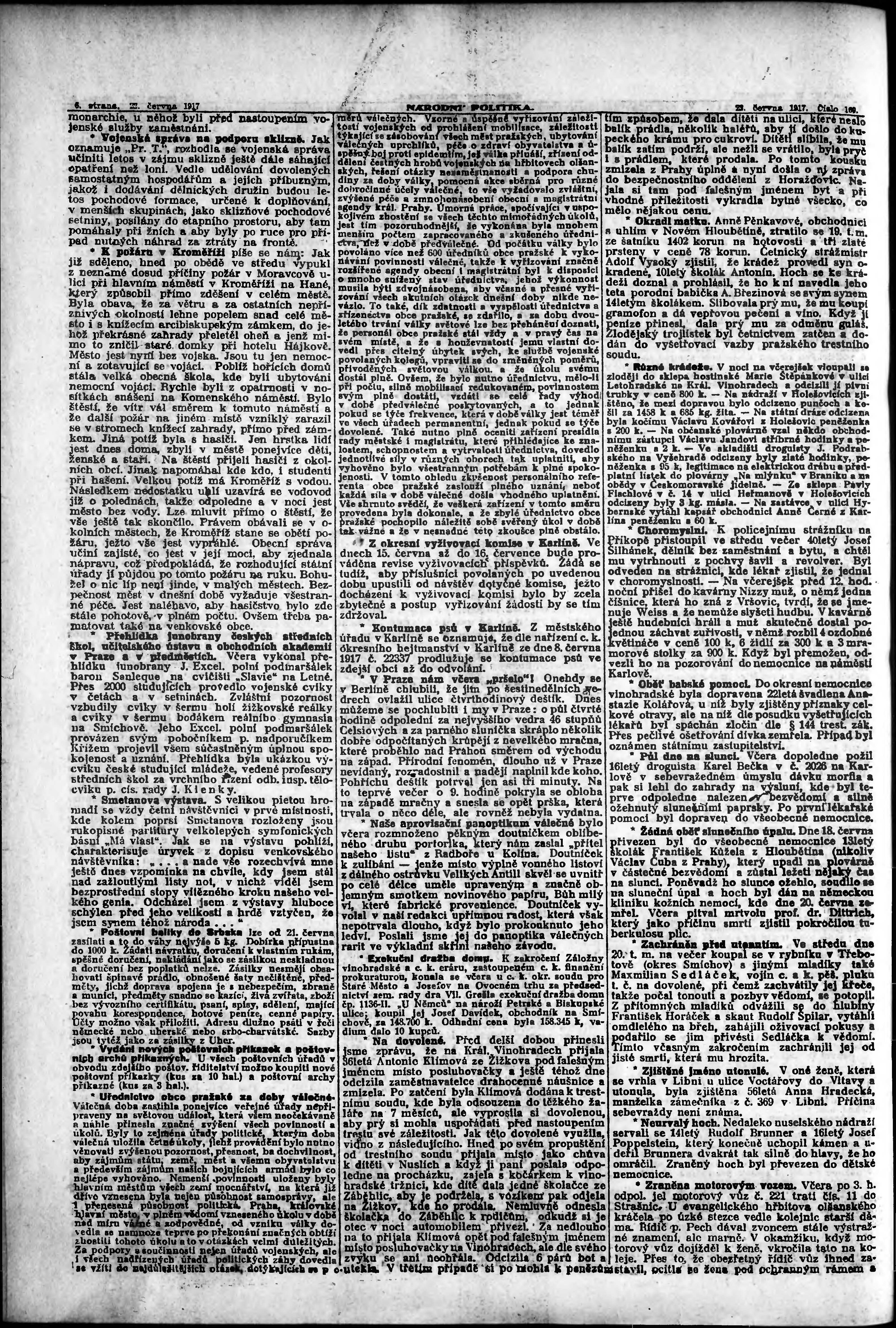* Datum vydání výtisku: 22.6.1917 Číslo výtisku: 169 Poznámky k výtisku: ranní vydání;