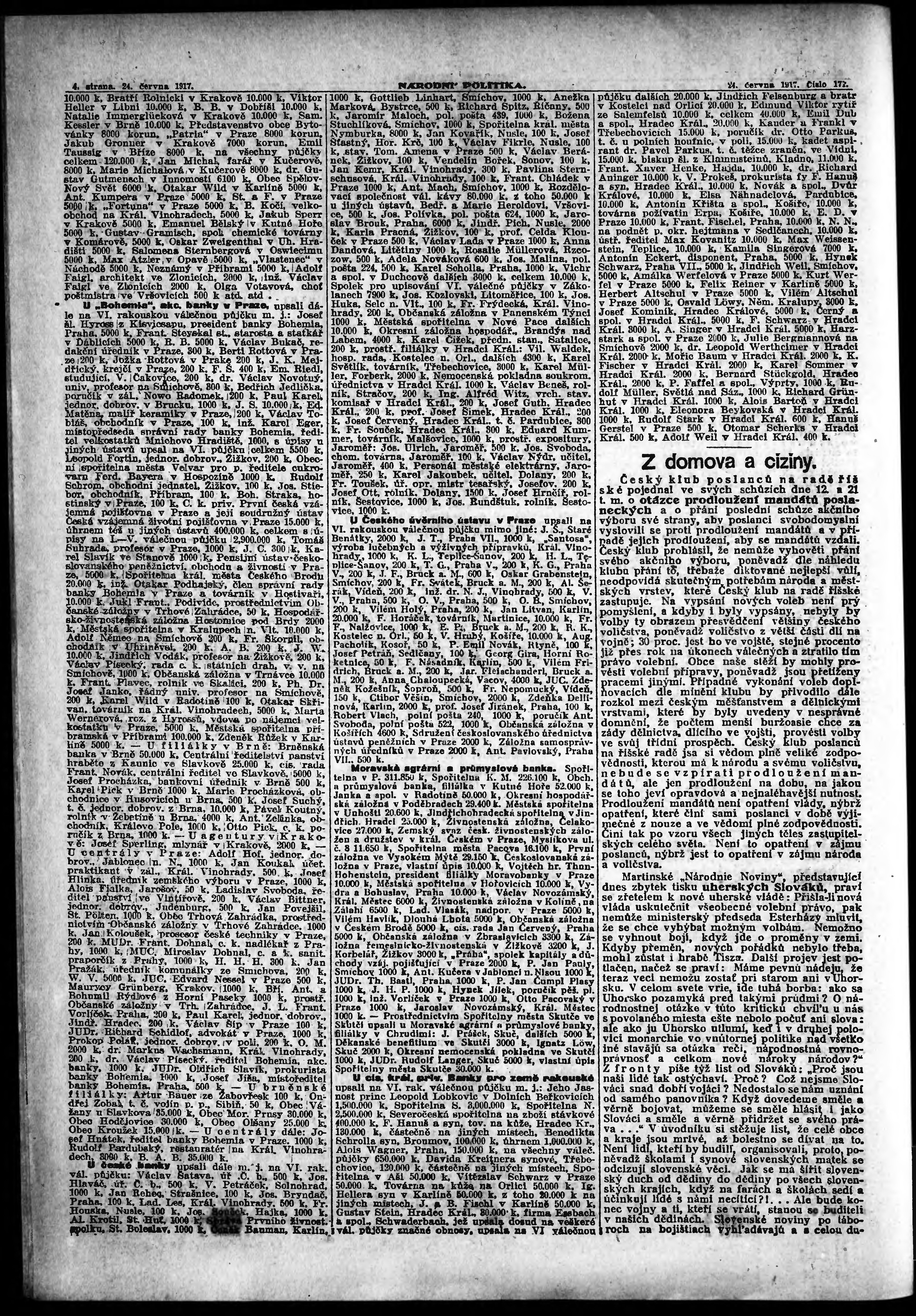 * Datum vydání výtisku: 24.6.1917 Číslo výtisku: 171 Poznámky k výtisku: ranní vydání; s. 7 - 10 není k dispozici;