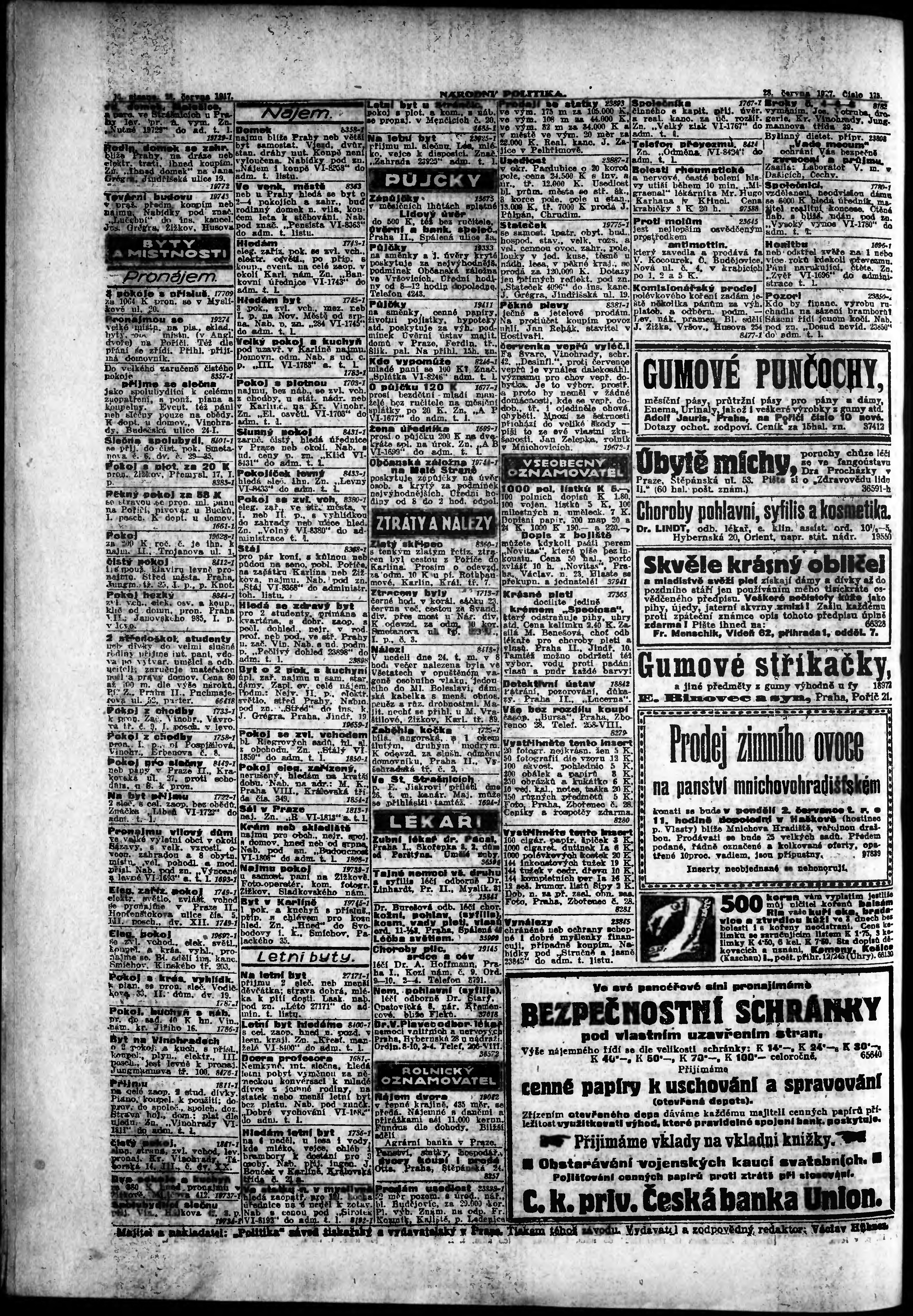 * Datum vydání výtisku: 28.6.1917 Číslo výtisku: 175 Poznámky k výtisku: ranní vydání;