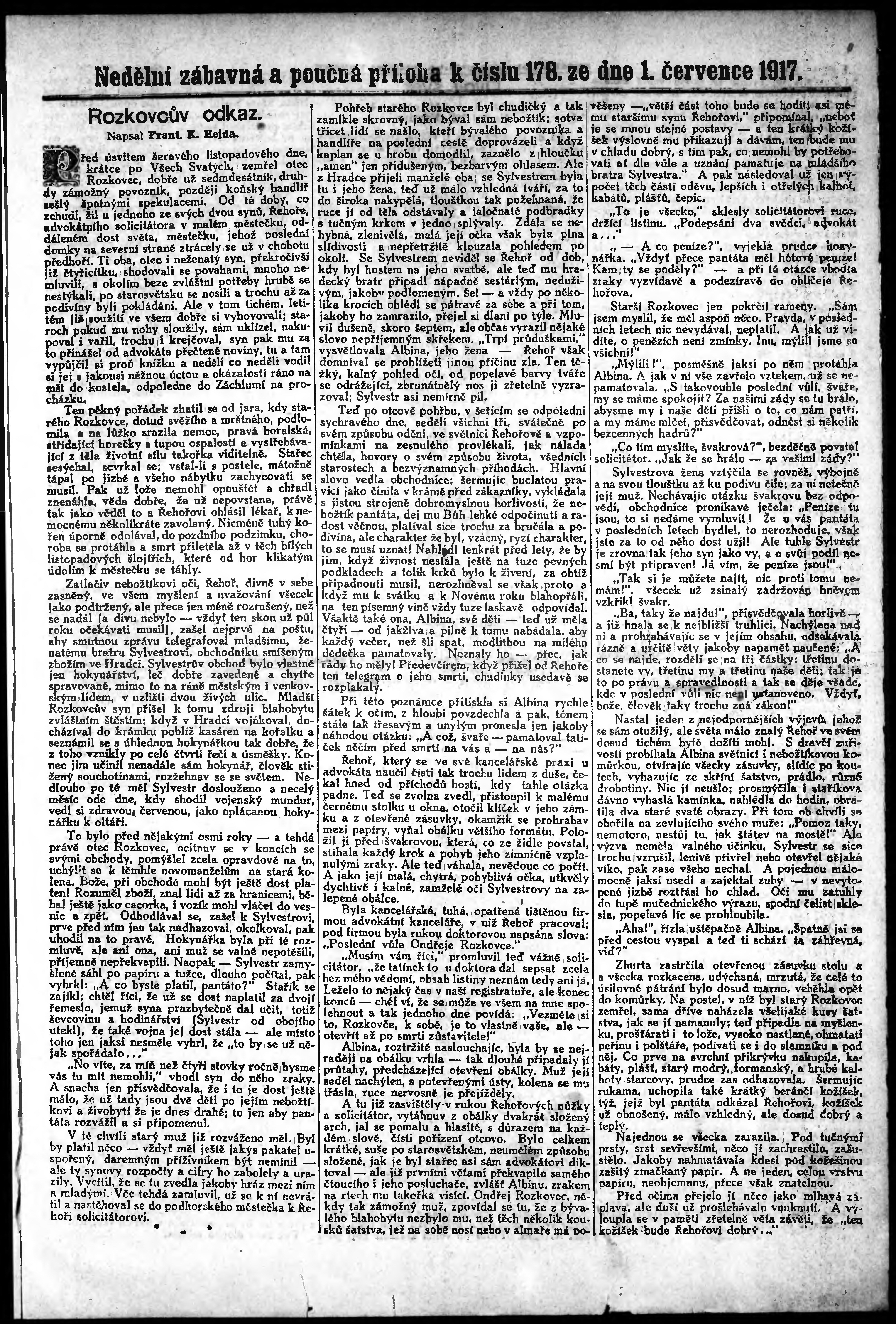 * Datum vydání výtisku: 1.7.1917 Číslo výtisku: 178 Typ výtisku: příloha